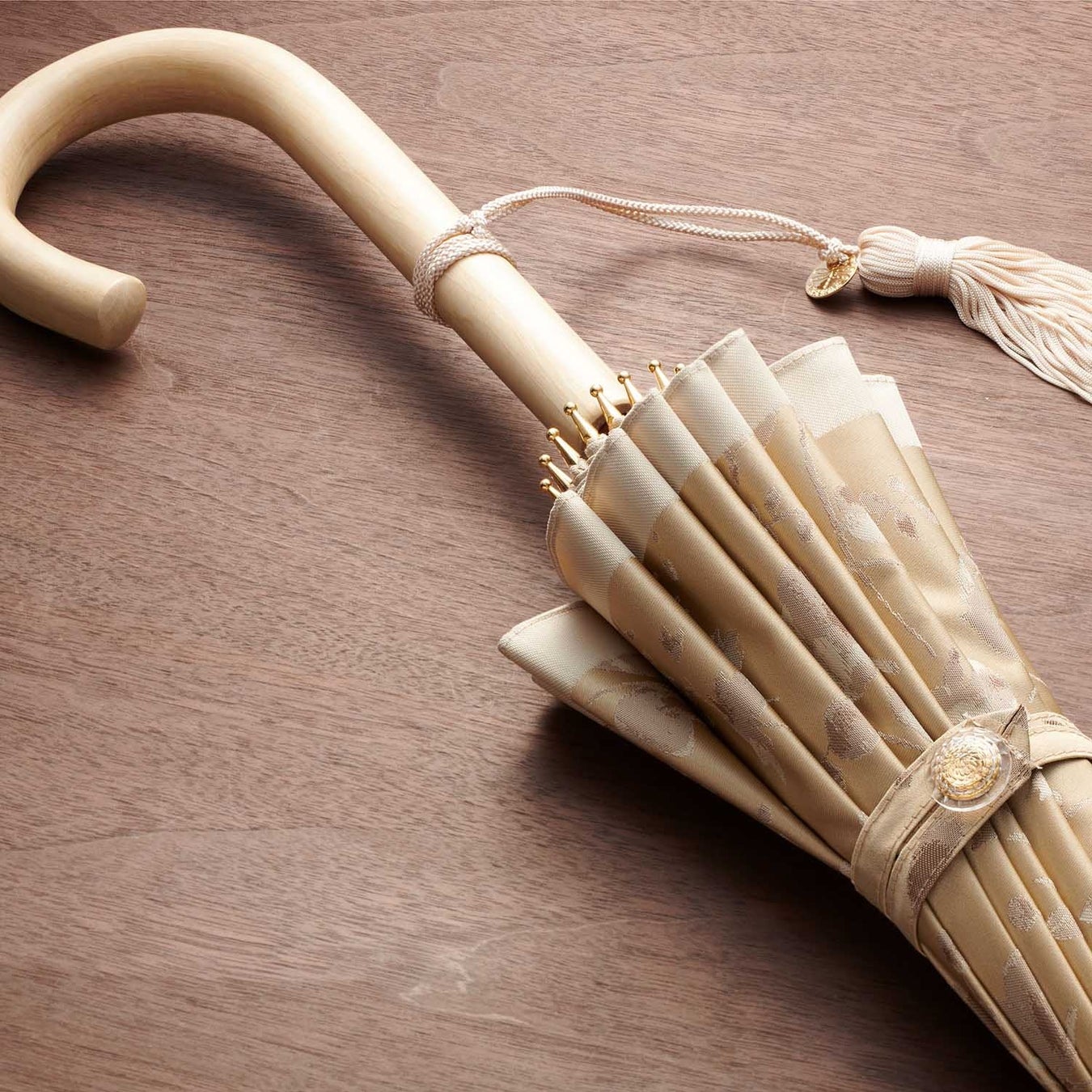 きらめくビジューボタンに心ときめく、シャンパンゴールドの傘。