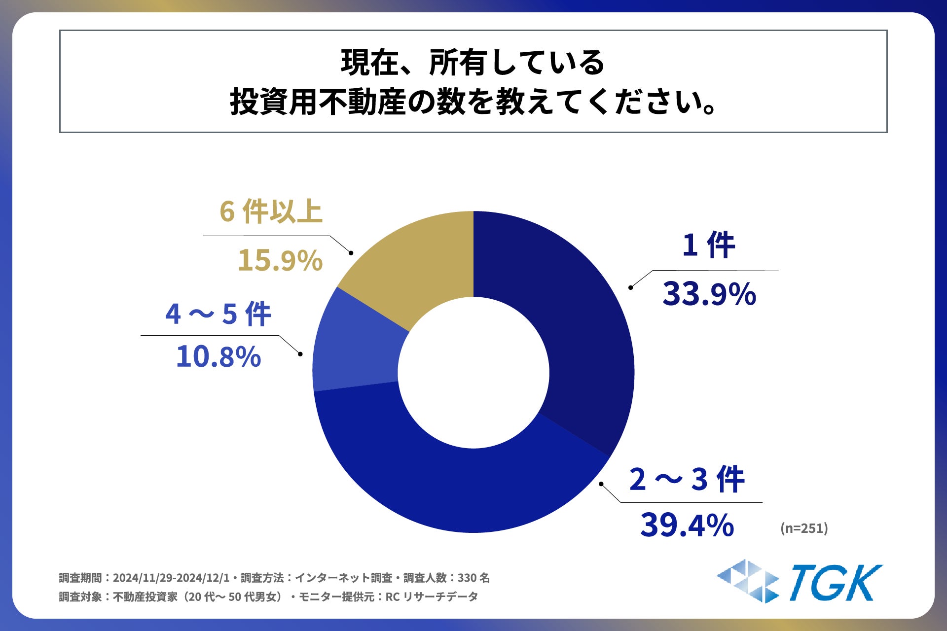 不動産投資で収益を上げている不動産投資家の6割以上が、少なくとも2件以上投資用不動産を所有している!ティーガッツケイ株式会社が「不動産投資の実態」に関する調査を実施!