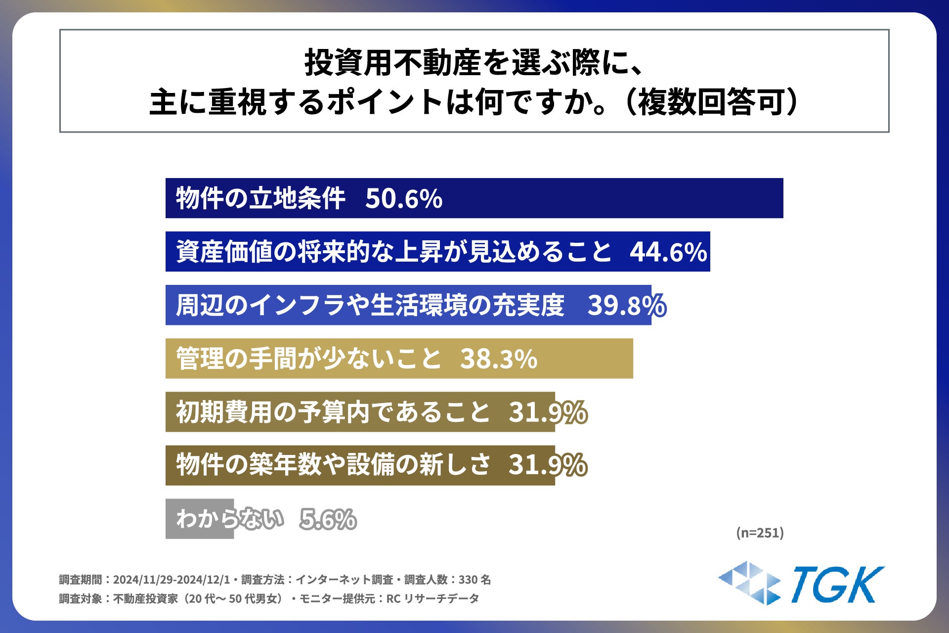 ・投資用不動産を選ぶ際に、最も重視するポイントは「物件の立地条件」