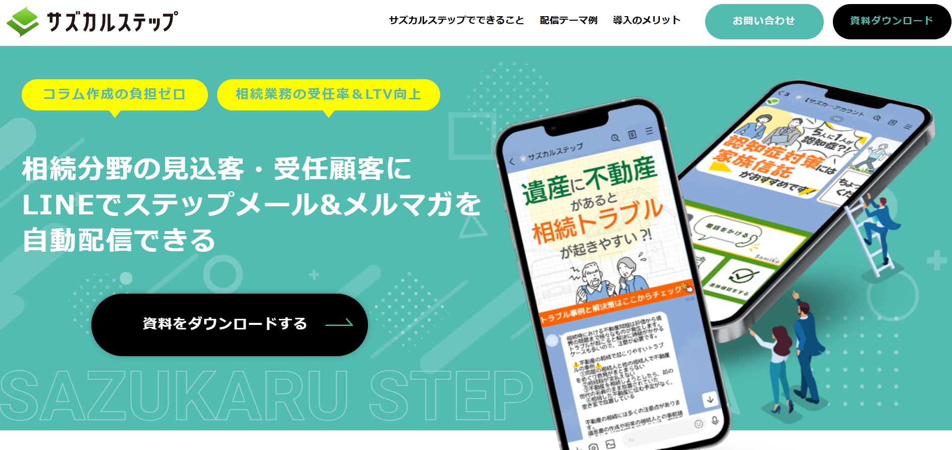 LINEを活用し、相続分野の見込み客に対するメルマガ配信、ステップ配信を自動化する「サズカルステップ」。β版トライアルによる改善を経て正式リリース後、相続分野に注力する士業事務所への導入が増加中
