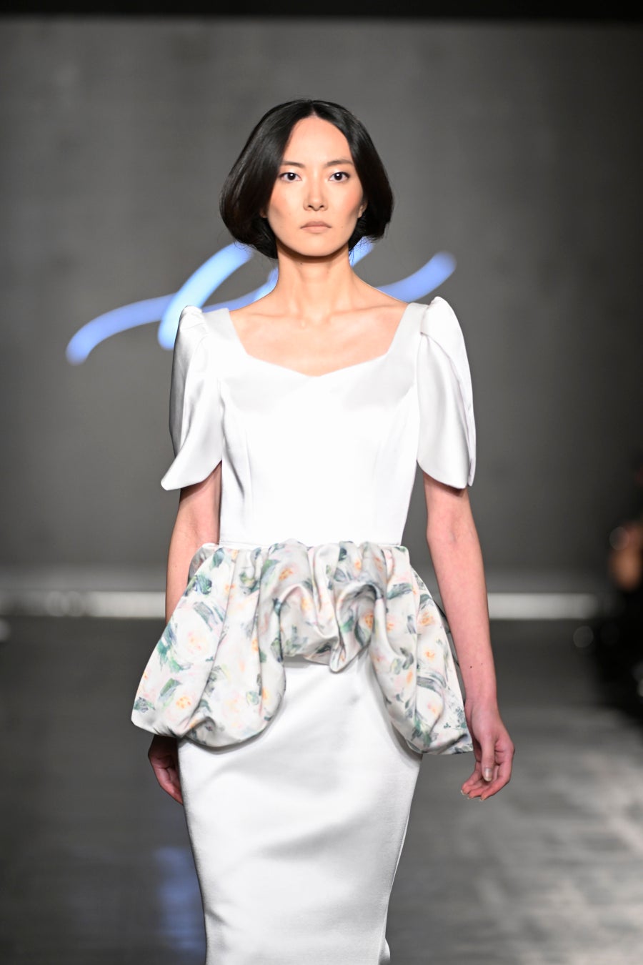 今回のコレクションでは、「白椿」をテーマとし、花言葉である完全なる美しさや至上の愛らしさからインスピレーションを受け、女性の持つ“強さ”“優しさ”“繊細さ”を表現した全12Lookを披露しました。またブランドメッセージである「自身が選ぶものがアイデンティティになる」ことを伝えるために、3人の異なる分野で活躍するデザイナーとのコラボ作品を発表。加賀友禅作家の一川 忍 氏や現代アート作家のAYANE MIKAGI 氏、書家の香寳(KOHO) 氏との作品は、 Paris Fashion Weekにおいて大きく注目されました。