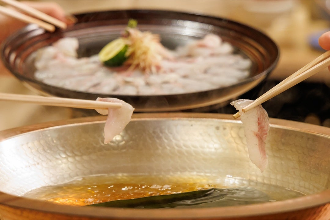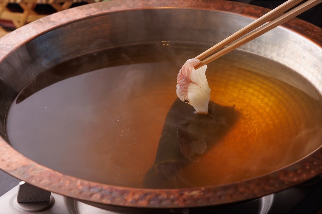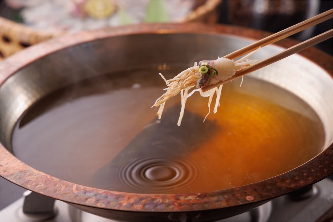 しゃぶしゃぶは鰹出汁をベースに昆布や白醤油など、鰻の旨味を引き出した特製出汁をくぐらせて召し上がっていただけます。