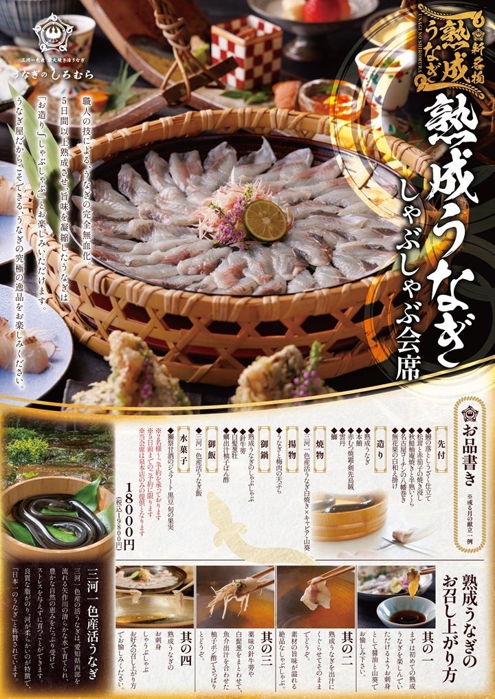 株式会社しろむらホールディングス(愛知県名古屋市 │ 代表取締役:沓名 英樹)が2024年12月1日(日)より、三河一色産活うなぎを使用した熟成うなぎのお造りとしゃぶしゃぶ会席料理のご予約を開始致します!