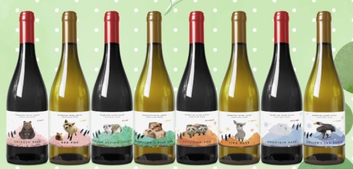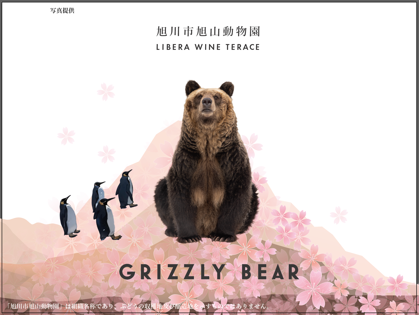 ワインのエチケットは、北海道の動物をテーマにデザイン、旭山動物園で飼育されているヒグマの「とんこ」、キタキツネの「なる」等その動物たちの愛くるしい表情やポーズが表現されています。全種類一列に並べることで、旭山動物園の四季が映し出される工夫がされています。