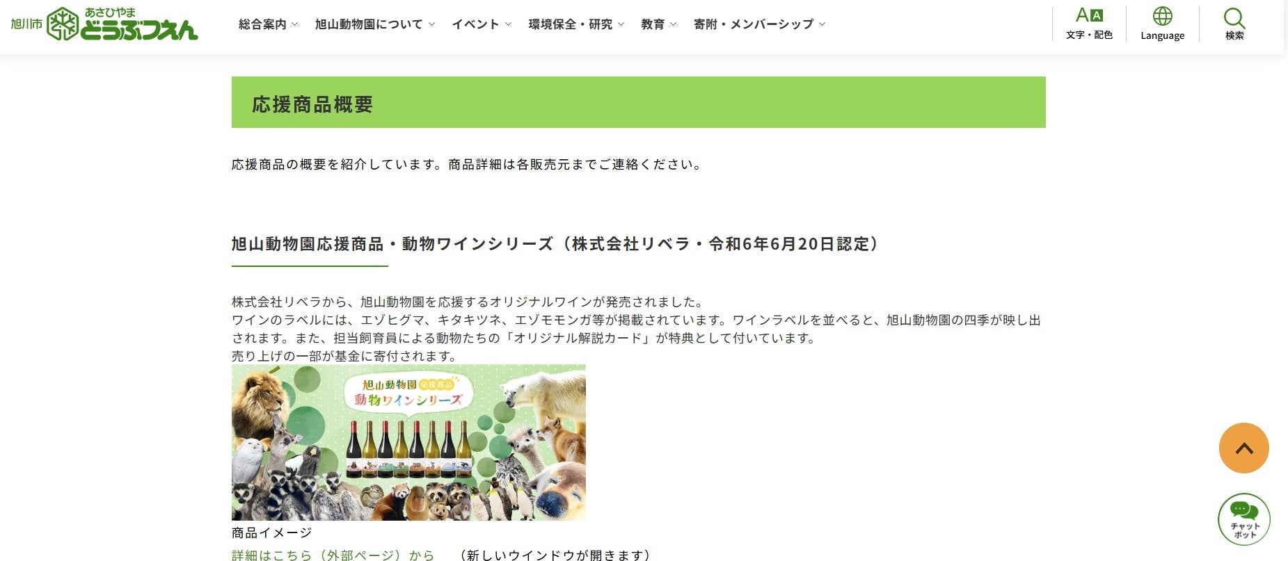 「旭山動物園 応援商品 動物ワインシリーズ(以下動物ワイン)」は、旭山動物園の理念「伝えるのは、命」に共感し、動物たちの生命の美しさや尊さを、障がい者が醸造するワインを通じて表現します。リベラで働く障がい者が「動物ワイン」を醸造し販売することは、障がい者の雇用機会創出、賃金確保の機会を享受、その売上の一部を「あさひやま“もっと夢”基金」に寄付、動物たちの保護や環境保全に寄与します。