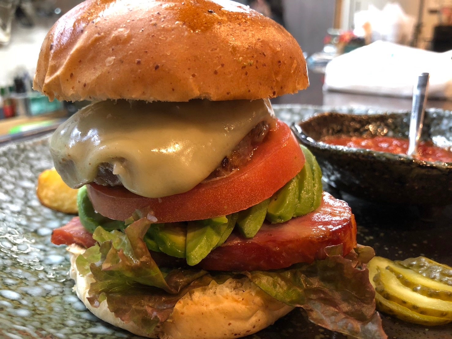 当店自慢は、自家製燻製トマトソースが香る「ABCバーガー」!アボカド、ベーコン、チーズのハーモニーが口いっぱいに広がります。夜はもちろん、ランチタイムから創作料理とお酒を楽しめる空間となっております。