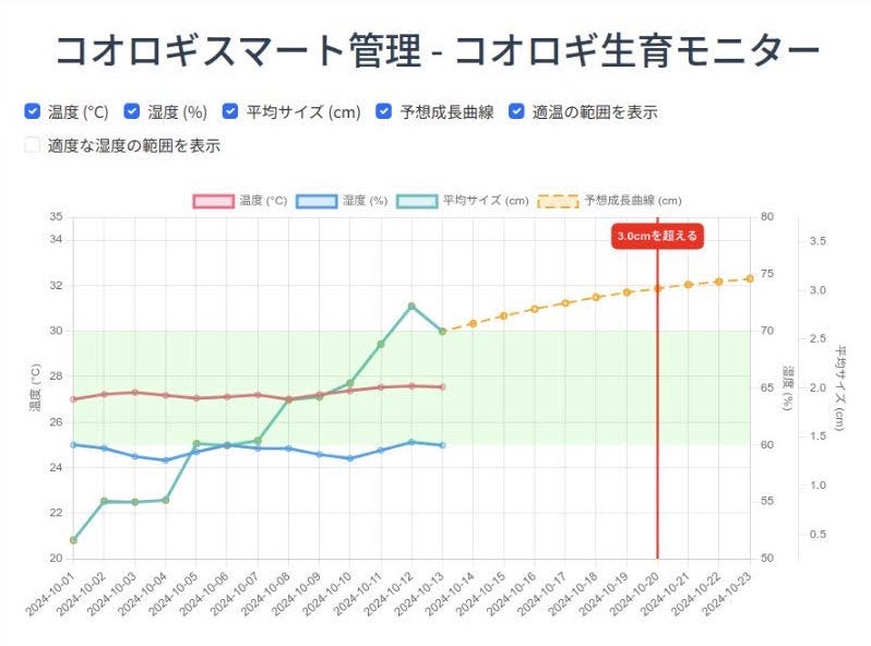 また環境管理システムと連携することでコオロギの生産予測を可能としております。