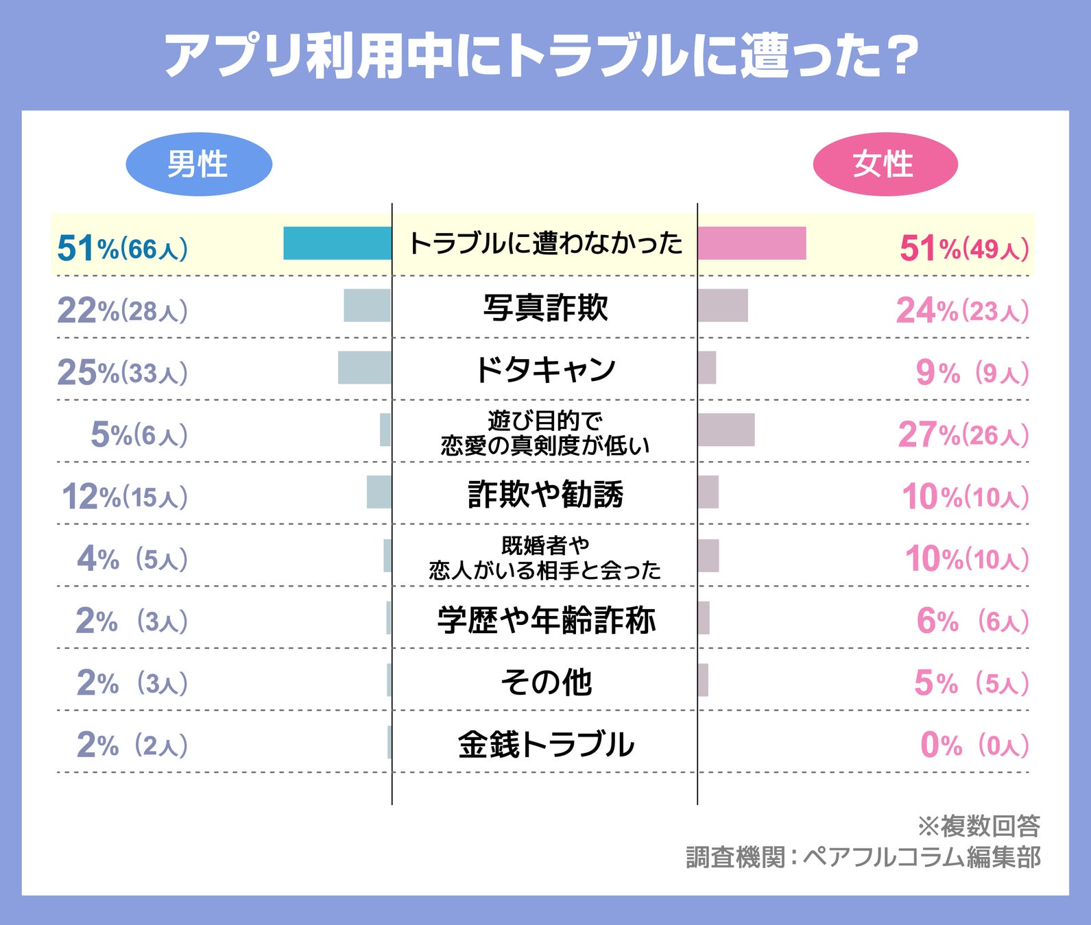 マッチングアプリを使ってトラブルに遭わなかった人は半数以上