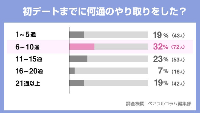 初デートまでのメッセージ数は10通以内が最多