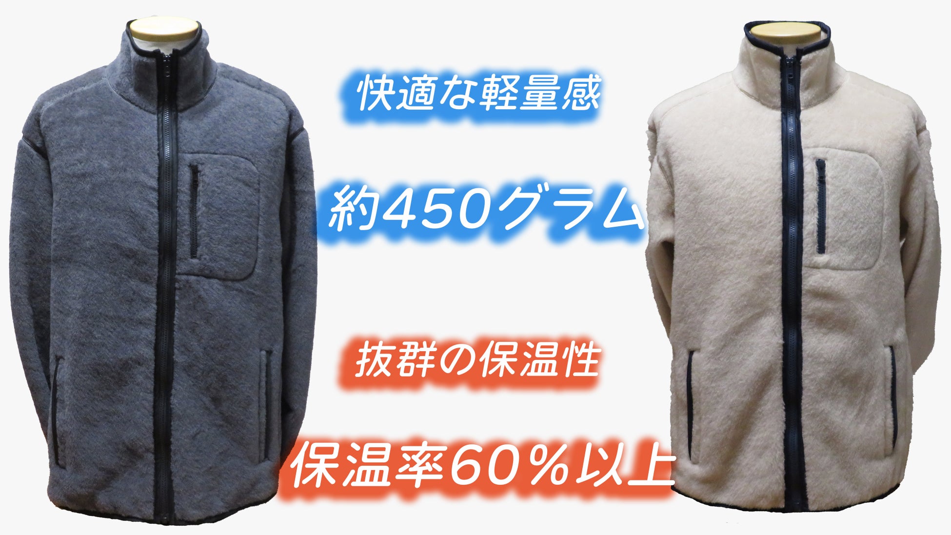 和心衣の新商品を開発する際、一旦アパレル素材から離れて考えることを心がけております。アパレルの中で考えますと、結局すでにあるものしか見つからないことが多いからです。そこで、単純にフリースのようなイメージの生地を想像したときに、頭に浮かんだのが「毛布」です。「毛布」は字のごとく、毛の布です。毛布と言えば被るものというのが当然のイメージですが、毛布の歴史を紐解いていくと、実は衣料で使われるものでもあったようです。では軽くて温かい毛布でフリースジャケットを創ろうと、いろいろな毛布メーカー様を探し、まさに着るための毛布になるべきものを発見しました。そこから約1年近く、サンプル作成を繰り返し今回のプロジェクトに辿り着きました。