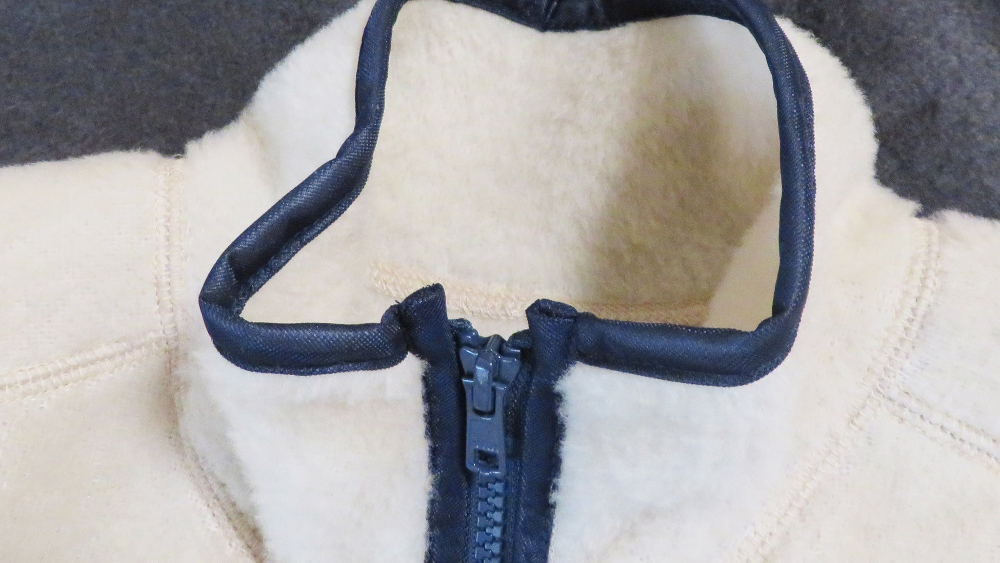 生地はドイツのカールマイヤー社のタテ編み機を使ってつくるニット毛布です。毛足が長く、肌触りが柔らかいのが特長です。素材はウールが81%、ポリエステルが19%。パイル(起毛)部分はすべてウールを使用。基布(芯)のみポリエステルを使用することで、パイル抜けを防ぎ、生地に強度とコシを持たせています。冬のアウターで1番欲しい機能といってもいい保温性は60%以上と、抜群の保温力。またウールは保温性は高いですが、吸放湿性も抜群なので蒸れません。また毛布と言えば皆さん重いイメージはございませんか?睡眠には程よい重さがある方が良いとも言われますが、今回は着て快適な毛布ということで軽量感にも拘りました。(製品Mサイズで約450g)
