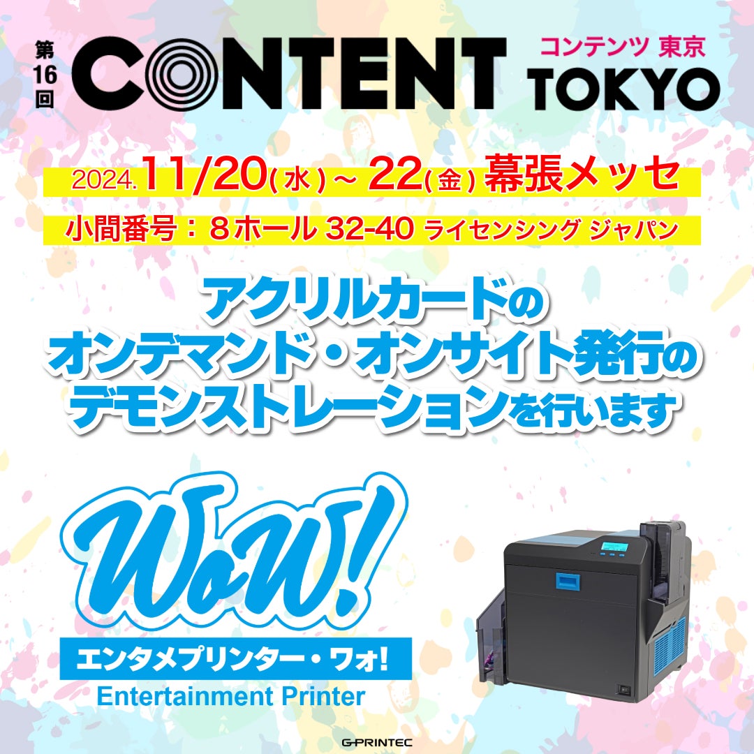 「第16回コンテンツ東京」に出展し、世界初のオンデマンド・オンサイト発行可能なアクリルカードプリンター「エンタメプリンター・ワォ!」を発表します