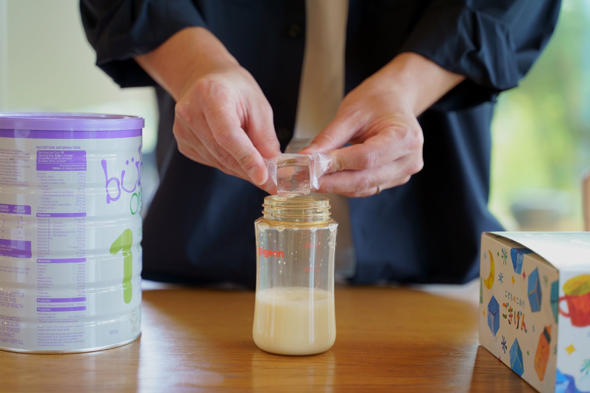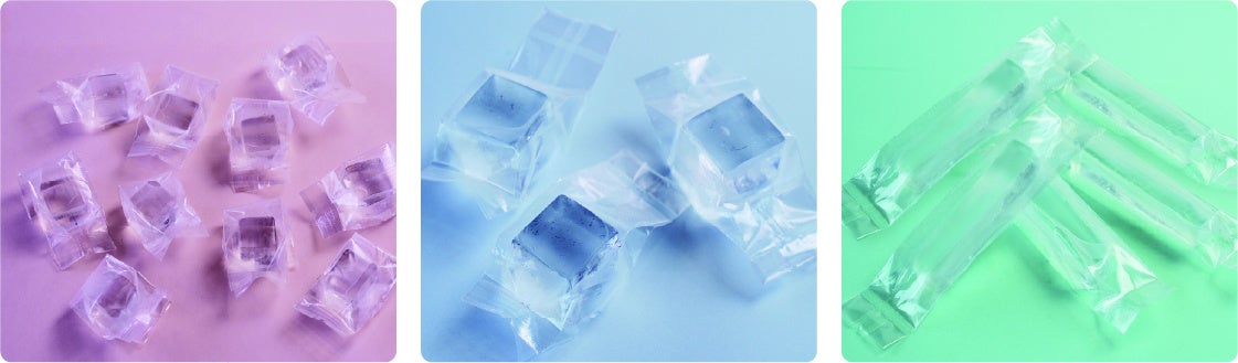 小さいキューブ型のスモールは、赤ちゃんの離乳食やミルクを冷ますのにぴったり。大きいキューブ型のラージは、パパ・ママのリラックスタイムにおすすめですし、スティックはおやつ代わりにそのまま頬張ったり、お出かけ時の水筒に入れたりと子育ての様々なシーンでお使いいただけます。現在は自社で運営するECサイト(Amazon)にて購入可能です。