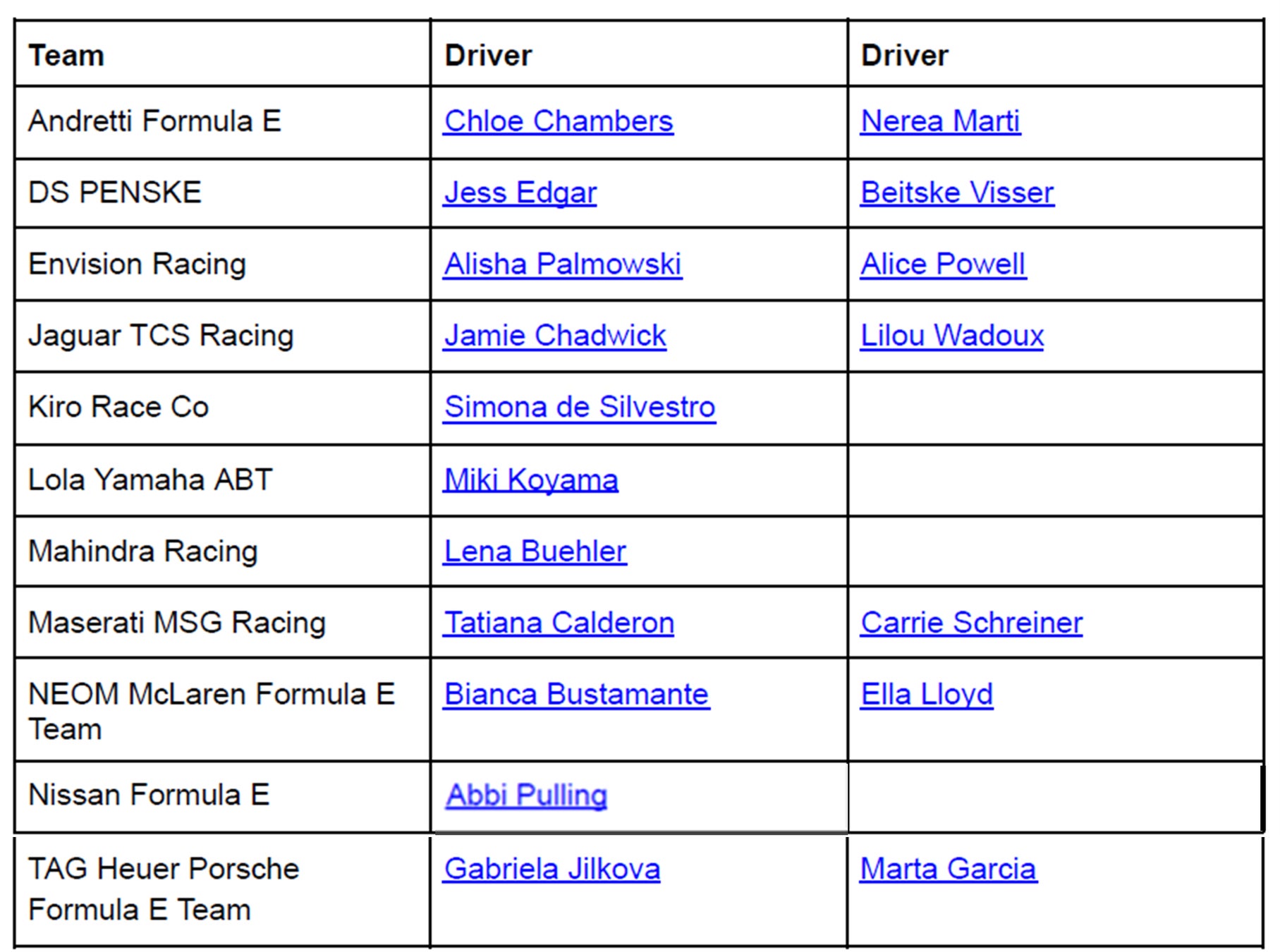 今回のプレシーズンテストでは、FIA選手権初の画期的なイベントとして、女性ドライバー限定のテストセッションも予定されています。11月8日(金)に予定されているこのセッションでは、フォーミュラEの新型レーシングカー「GEN3 Evo」を、選抜された女性ドライバーたちが乗車します。選手権に参加する各チームは、半日のセッションに少なくとも1名の女性ドライバーを参加させることが義務付けられ、2名のドライバーの参加が奨励されており、全員が今シーズンのレーシングカーで参戦します。この歴史的なテストには、モータースポーツ界からトップクラスの才能が集結し、注目のドライバーが揃いました。