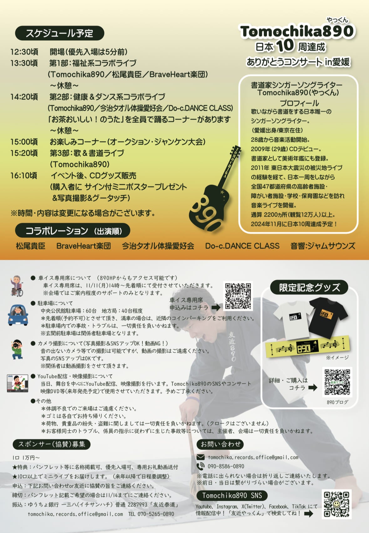 イベント名:Tomochika890(やっくん)日本10周達成ありがとうコンサート in愛媛