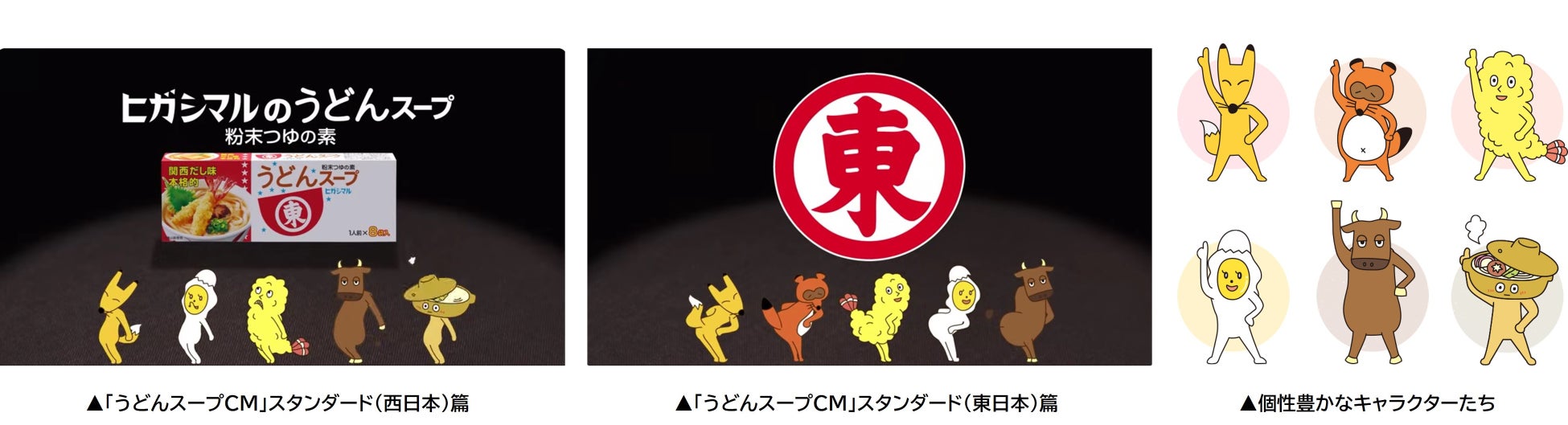 今回の企画には、「“ヒガシマルのうどんスープ”がもっと皆さんの気になる存在になりたい!」「“ヒガシ”つながりで当社に少しでも親近感をもっていただきたい!」という想いを込めました。今だけのキャラクターたちの姿にも大注目です!