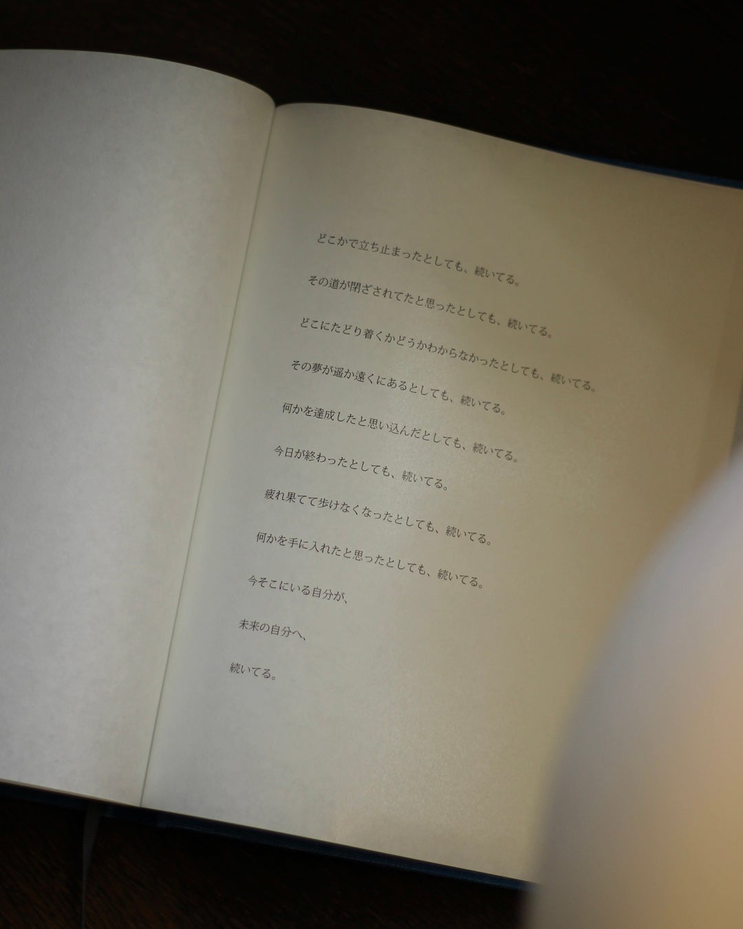どうありたいか、いいもの、いい言葉、人生に影響を与えるような日々の出来事を。誰もが人生の途上にいます。壁に当たるときも、思うようにいかないときも、迷うことも、選択を迫られることも出てきます。そうしたときに手帳を見返して、あのときの自分の想いを確かめることで、進むべき方向が見えてきます。自分にとって大切なものをこの手帳に記していくことで、自分がどうあるべきか、どのように生きたいかが、そのときそのときは断片的に書いたものが、やがて輪郭を帯びていきます。人生のツールとして、いつでもそばに、という想いで作りました。