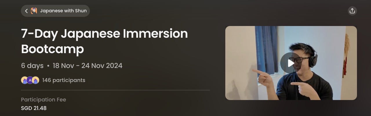 Shunさん:https://nas.io/japanese-with-shun/challenges/7day-japanese-immersion-bootcamp