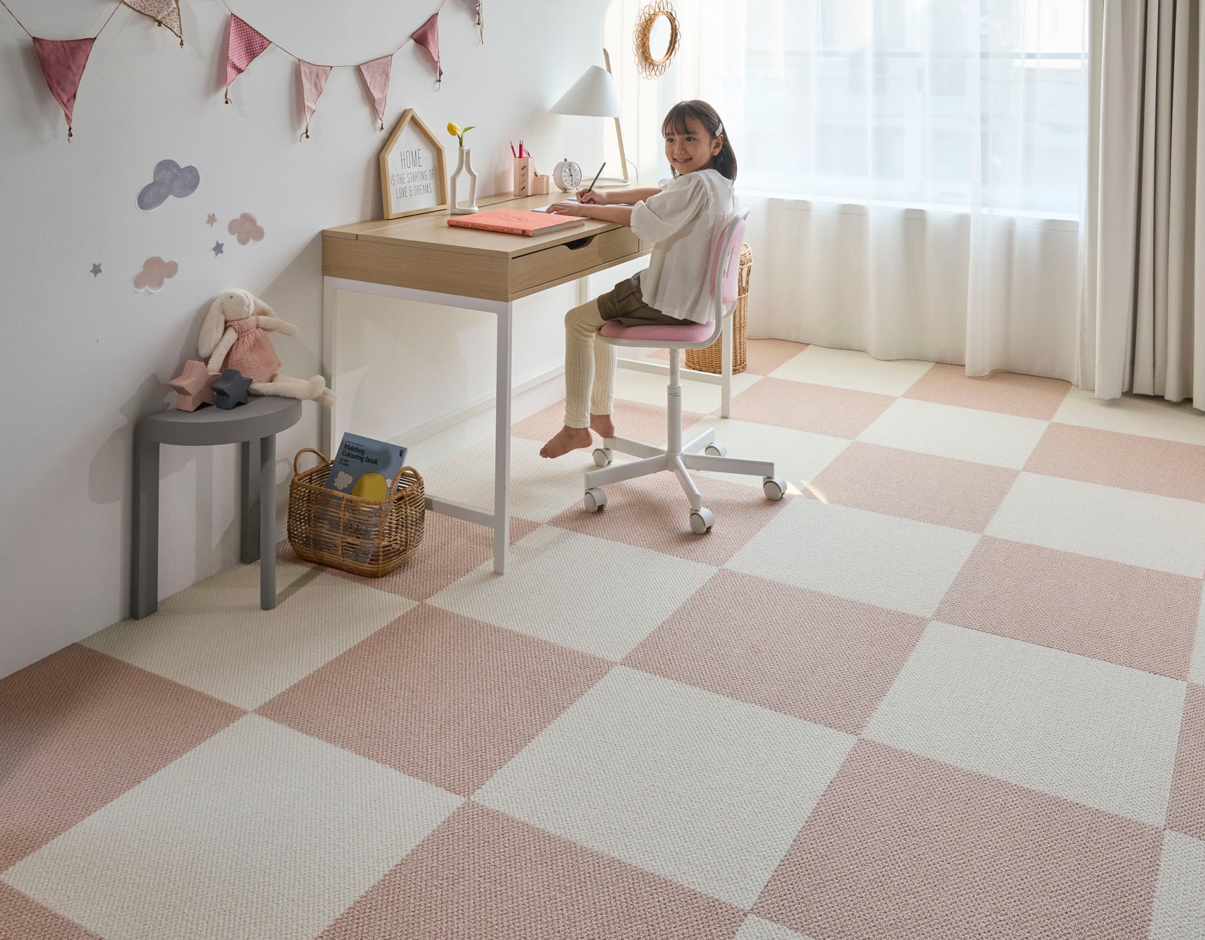 色違いのホームタイルで子供部屋をかわいく演出お子様にも喜ばれています