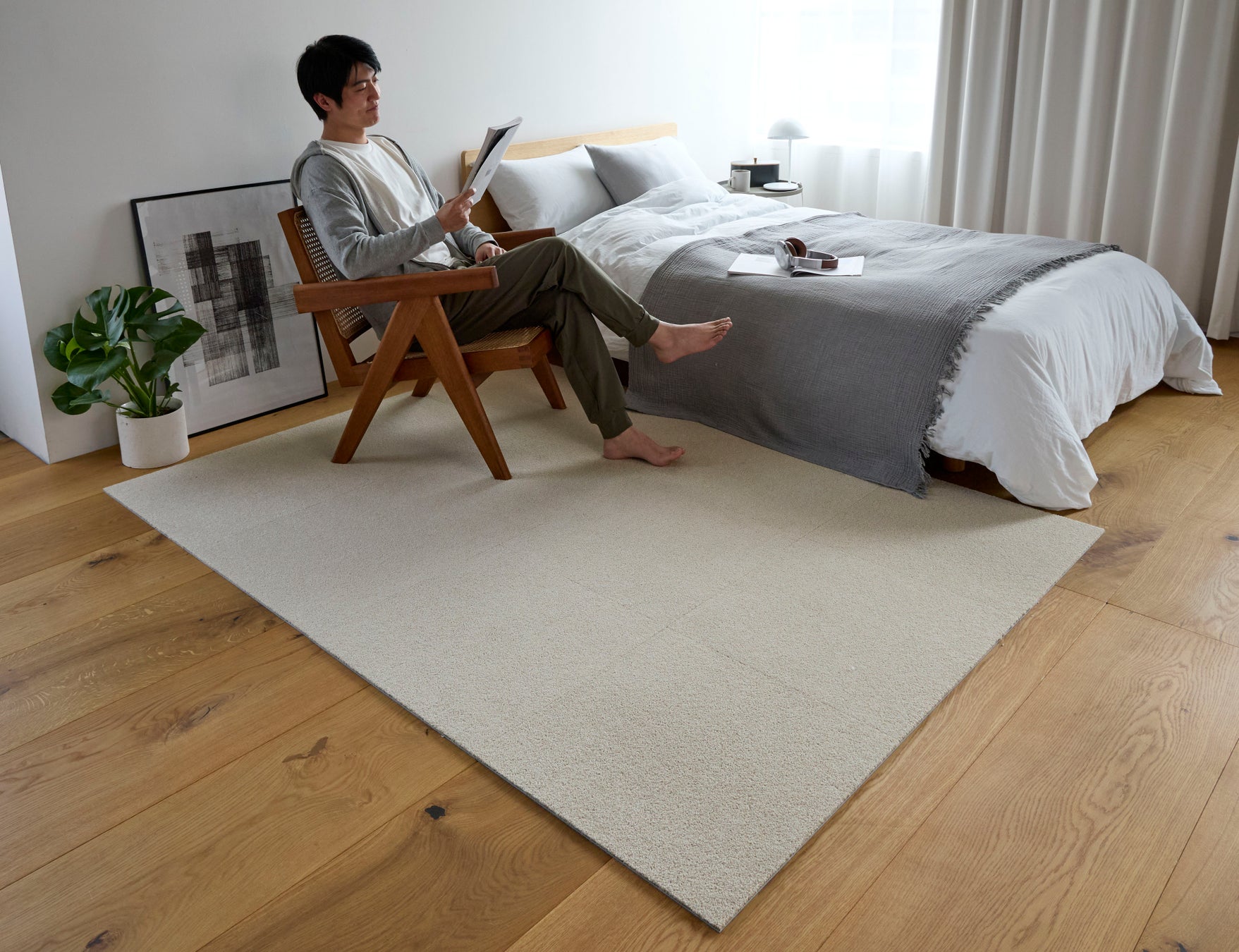 ベッド前に敷くと、素足でも冷たくなく、優しい足触りでくつろぎ度もアップ