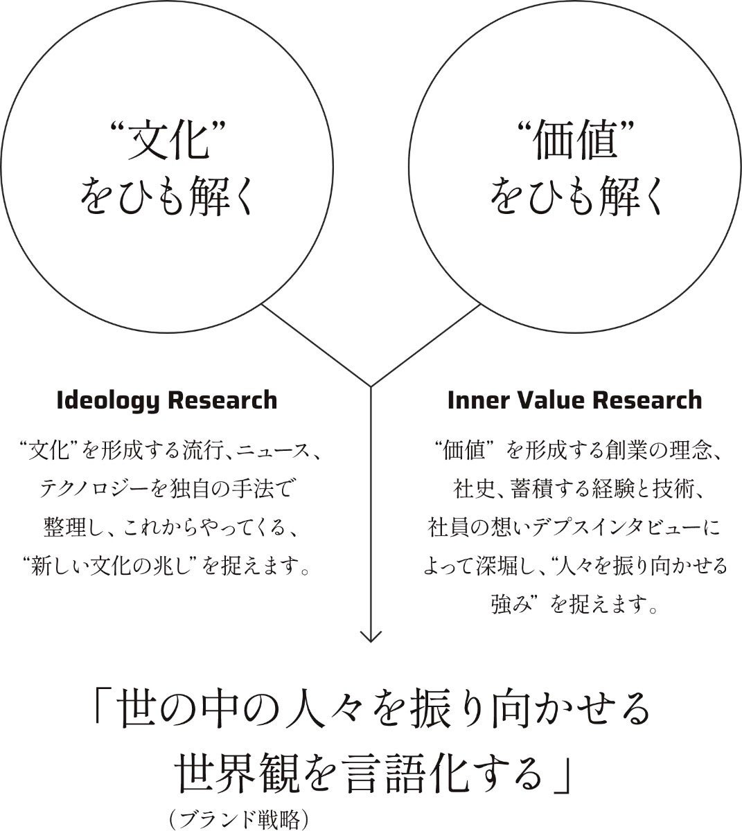 「世界からあきらめをなくす」をビジョンに掲げる、京都大学発のスタートアップ企業。人文社会学×経営学を基に、社会の兆しを捉える独自のイデオロギー調査を通じた、新規事業開発、ブランディング支援、システム開発等を行っています。