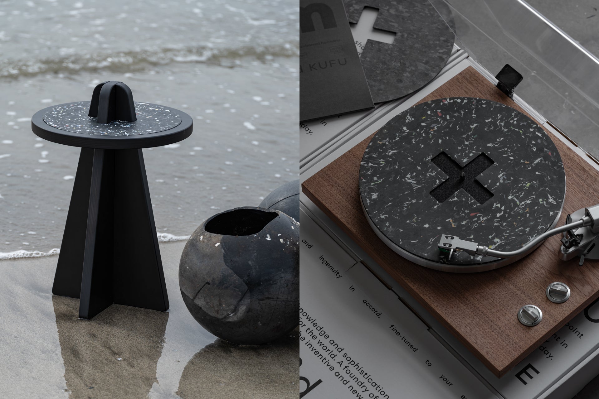 ディスク( 天板の上面部 )には別売りのパーツとして、海洋プラスチックを用いた再生材で製作された OPTION DISC をセットすることができ、お気に入りのレコードをターンテーブルへ載せるように、好きな盤面を選んで素材や色の組み合わせを楽しむことができます。