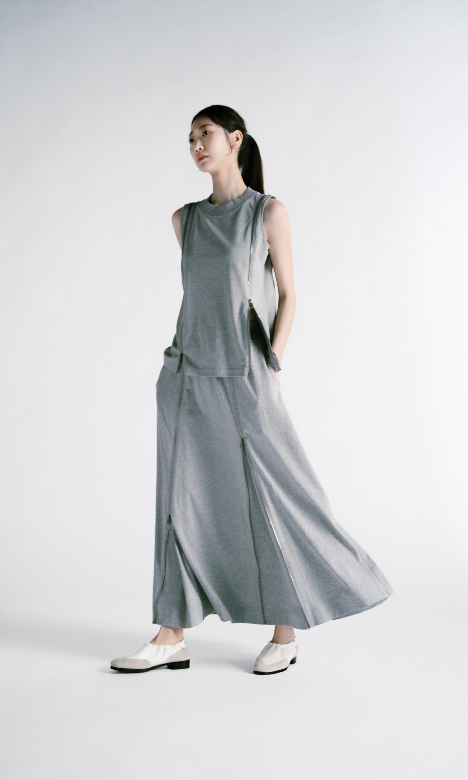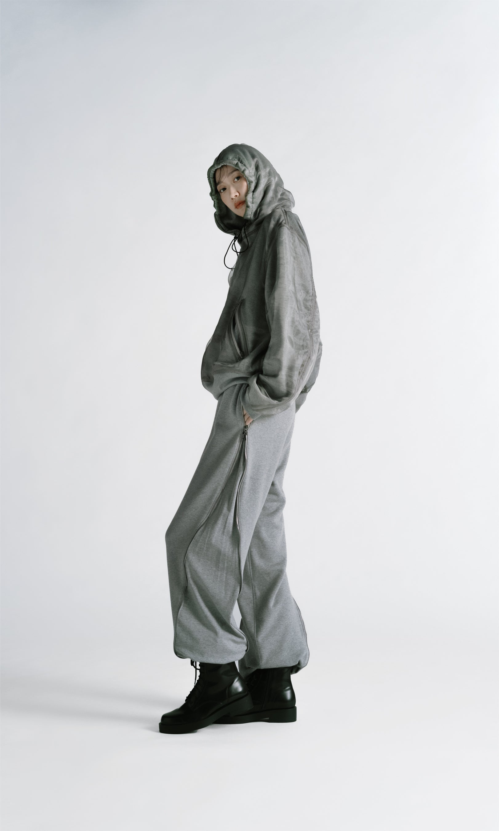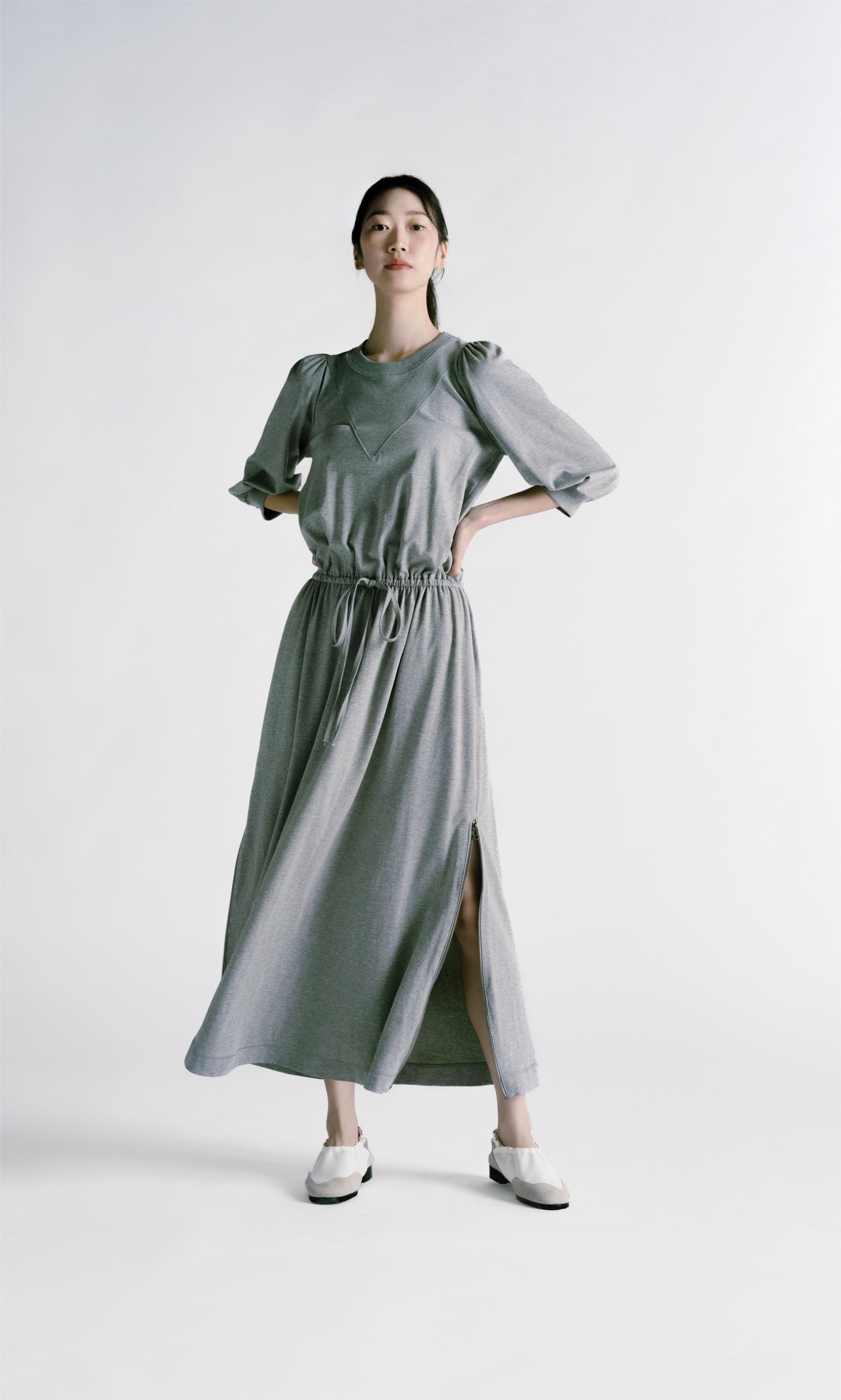 スエットジャージィというアイコニックなアイテムを、ドレスやスカートなどのフェミニンなラインへと発展させ、ギミックを施したユニークな”DESIGNER‘S ATHLETIC WEAR“コレクションです。