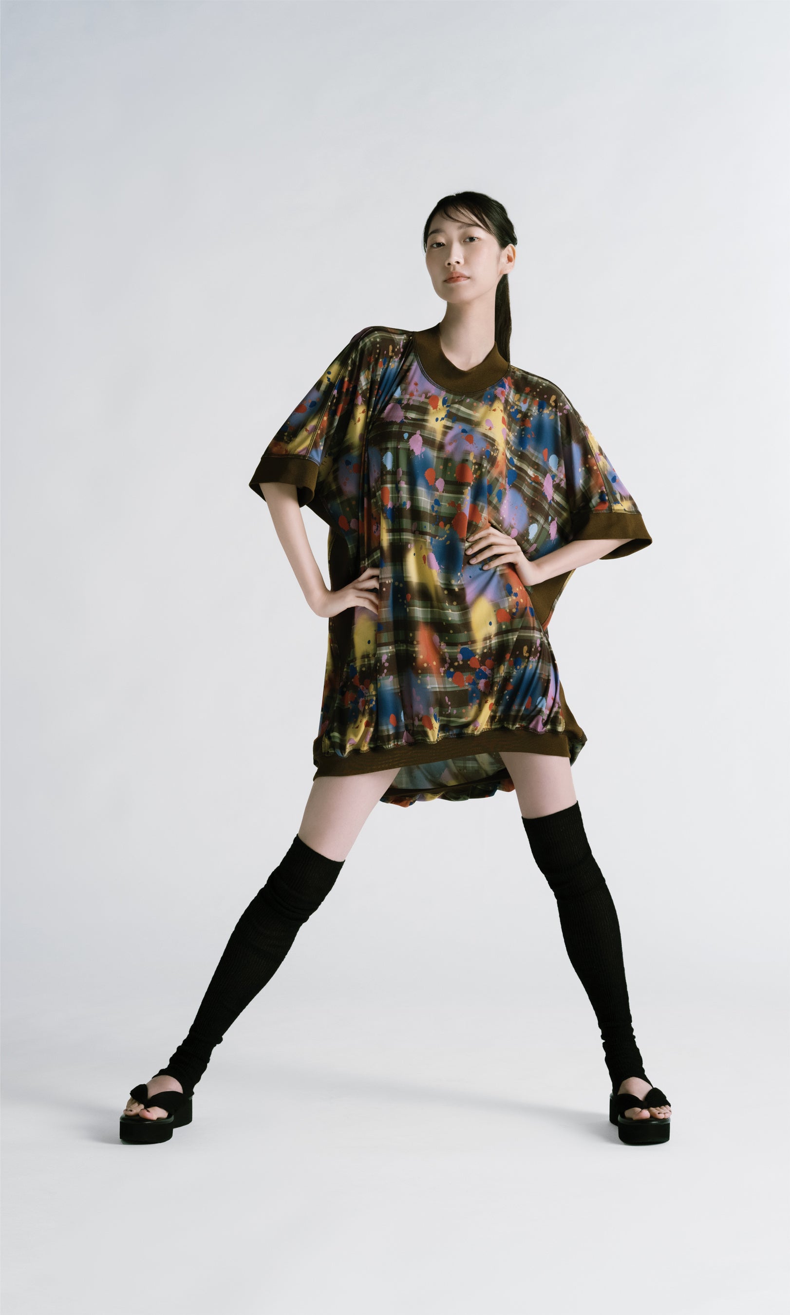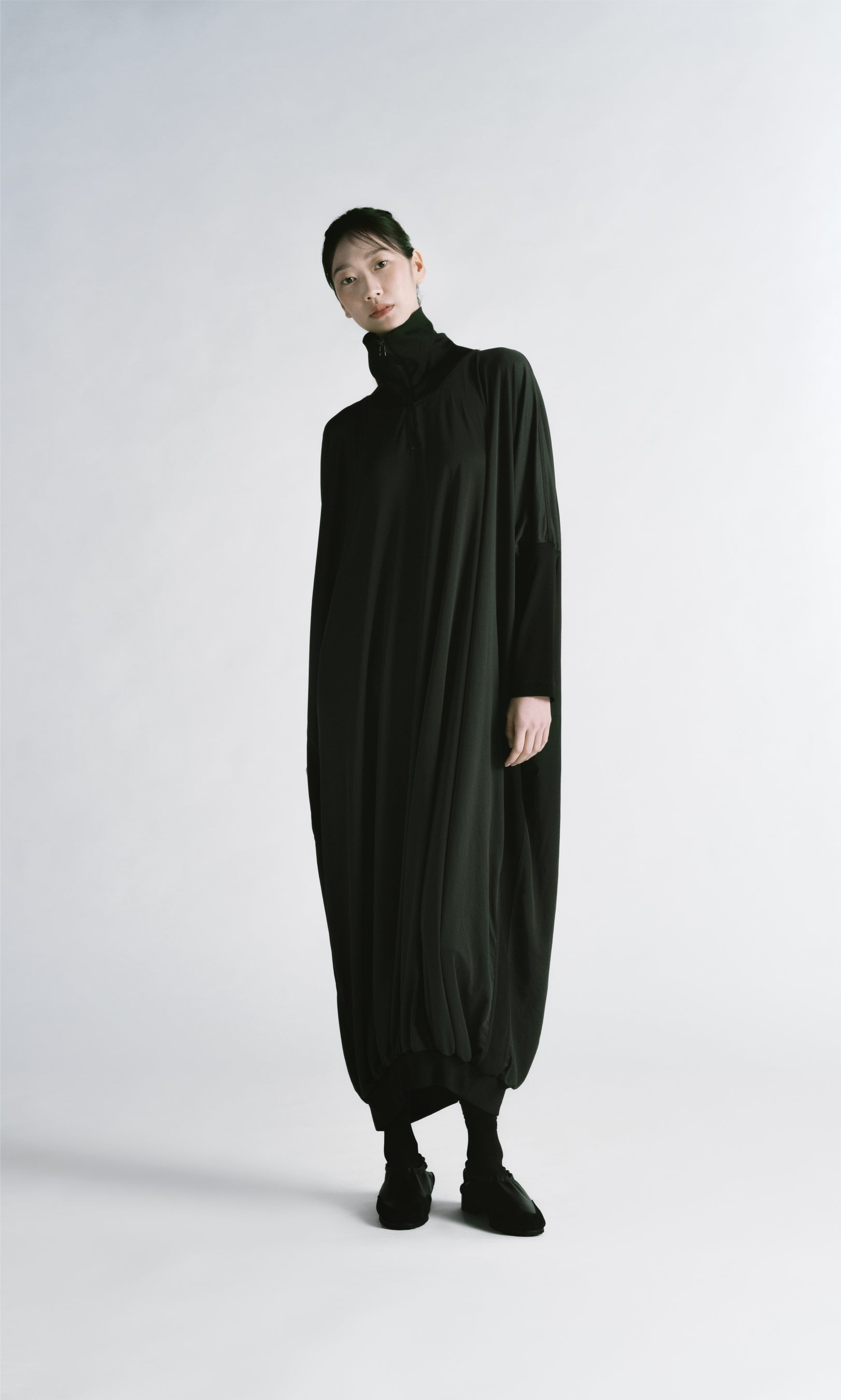 東レ株式会社のナノテクノロジーによって開発された、和紙のような心地よい風合いと合繊の機能性を両立させた最先端複合繊維 Camifu®。成分の異なるポリマーを原糸内部に精密に配列し、和紙のような風合いと機能性の両立を実現し編み立てられたスムースジャージィ。ボリュームシルエットにも関わらず、軽量でシワになりにくくイージーケアな、フルアイテムプロダクトへと展開。
