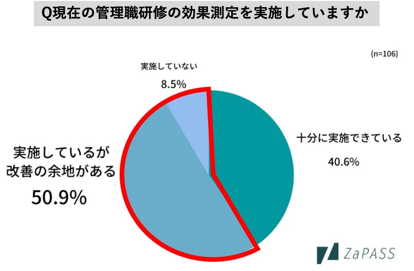 しかし、一般論だけでは、自社の経営戦略を後押しする人材を育成することはできません。実際、管理職研修に実施効果を感じていない割合は半数にものぼります。