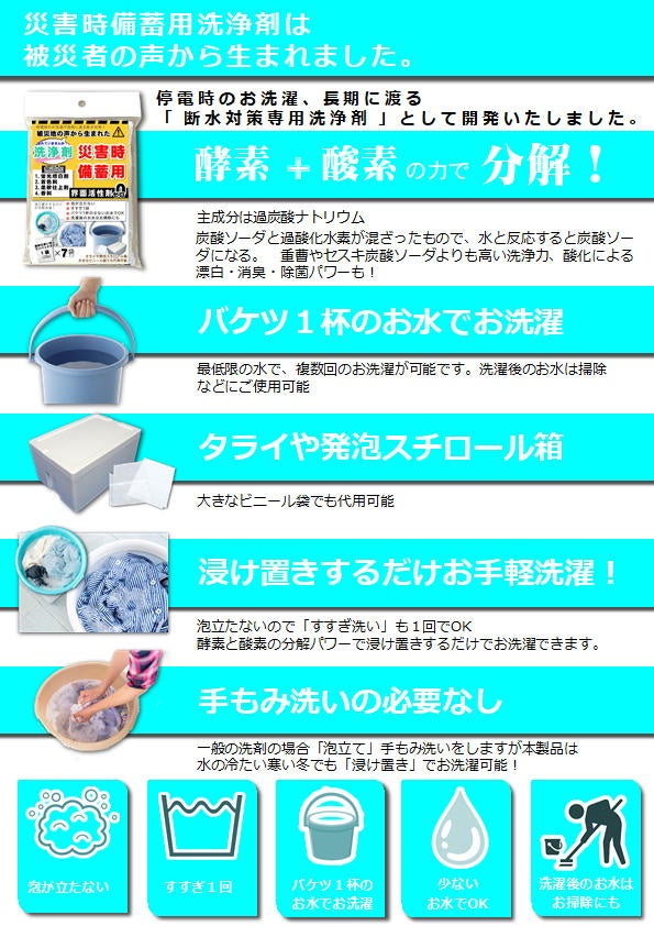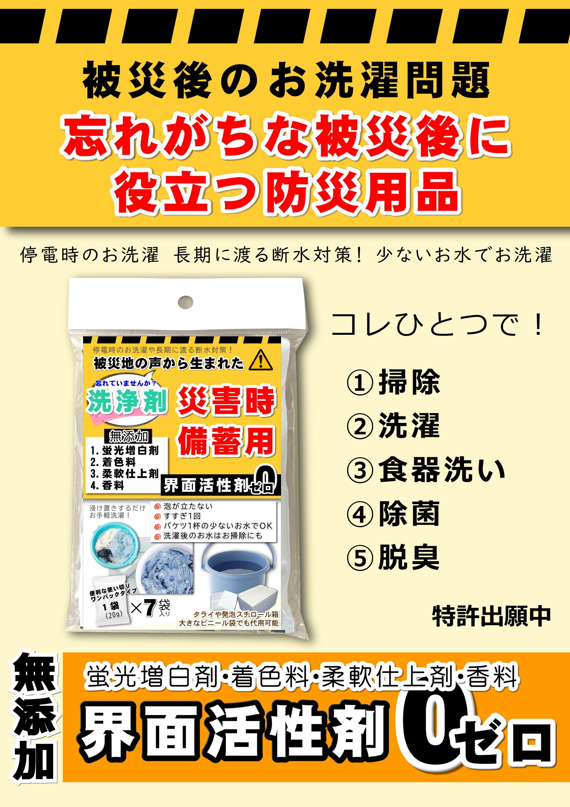 商品名 : 「災害時備蓄用多機能洗浄剤」 衣類・台所・住宅用洗剤