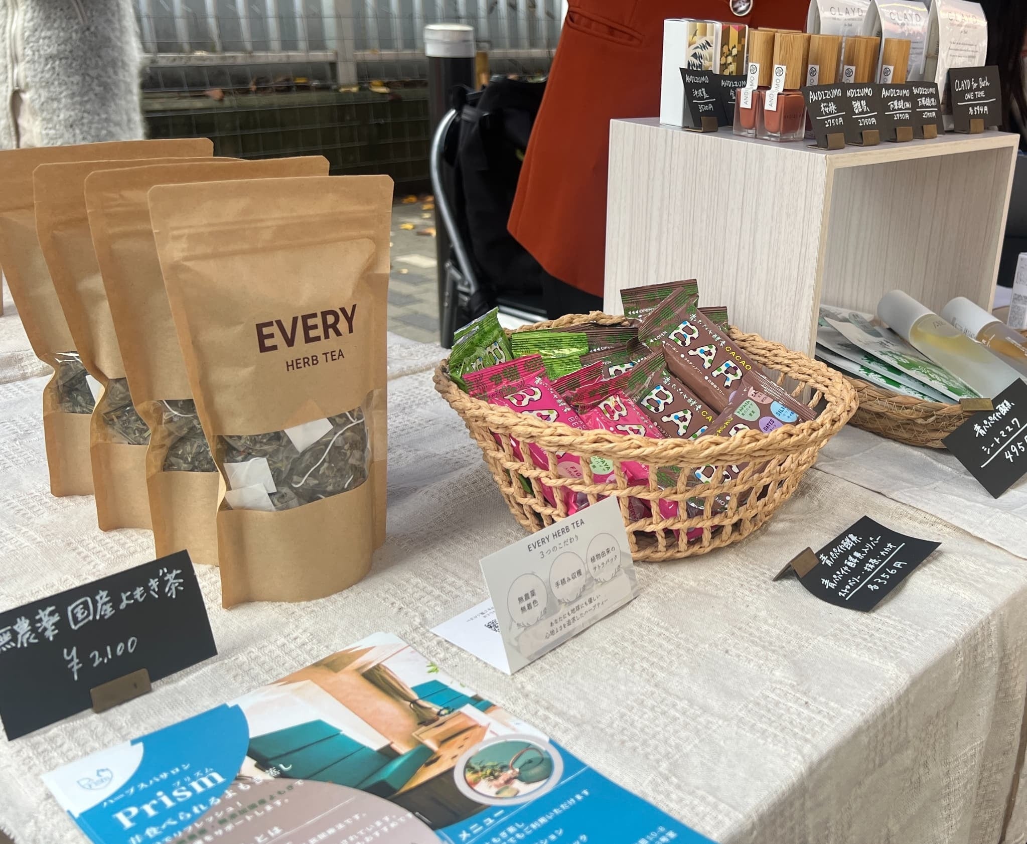 イベントでは秋の深まりを感じる寒さだったこともあり、株式会社moveが運営するよもぎ蒸しサロンPrismでも提供している国産無農薬のよもぎ茶の試飲や販売も行いました。