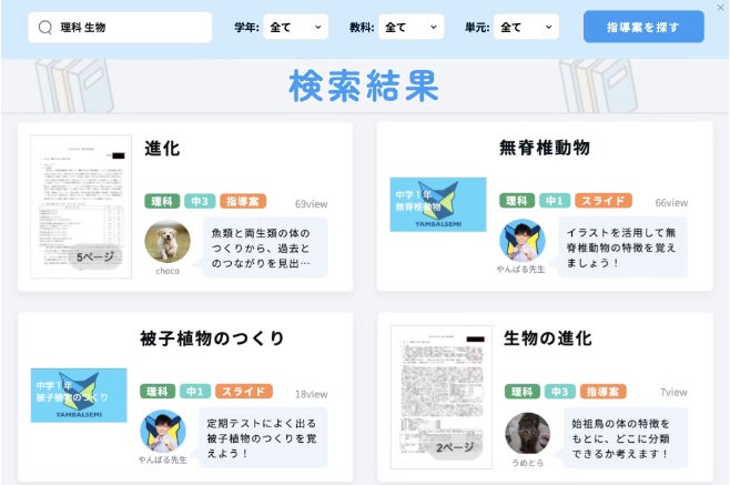 先生は匿名で授業アイデアや教材を投稿することができ、「自分が考えた授業が全国の学校で行われる」ことで、授業づくりのモチベーションアップにもつながると考えています。