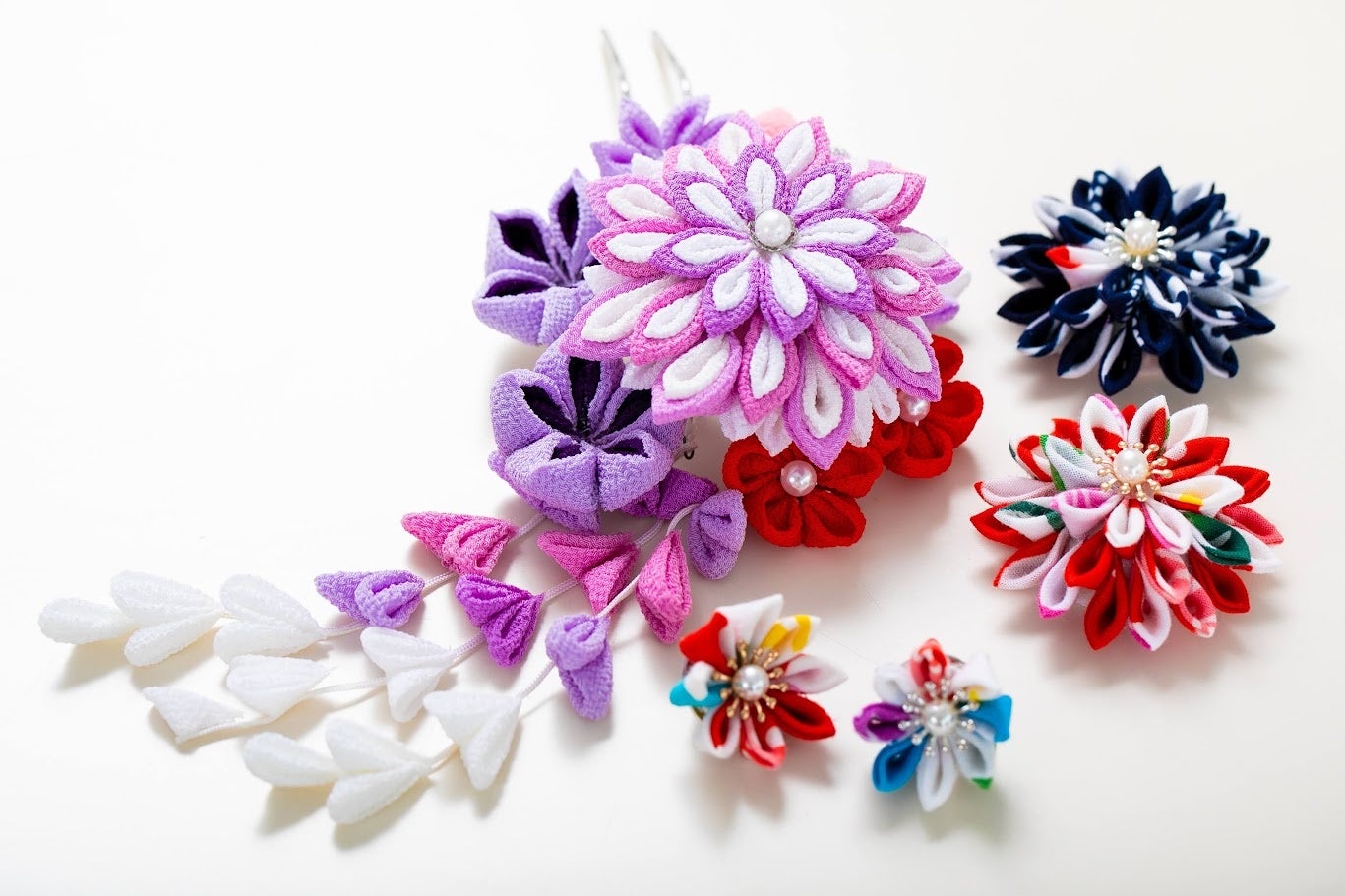 江戸時代から伝わる日本の伝統工芸で、正方形の小布を折りたたんで花びらや葉の形を作り、それを組み合わせて美しい装飾品を作る技法です。主に舞妓さんの髪飾り、和装の髪飾りとして使用され、繊細で優美なデザインが特徴です。近年では、現代的なファッションアイテムやインテリアとしても再評価されており、その独特な美しさが注目を集めています。