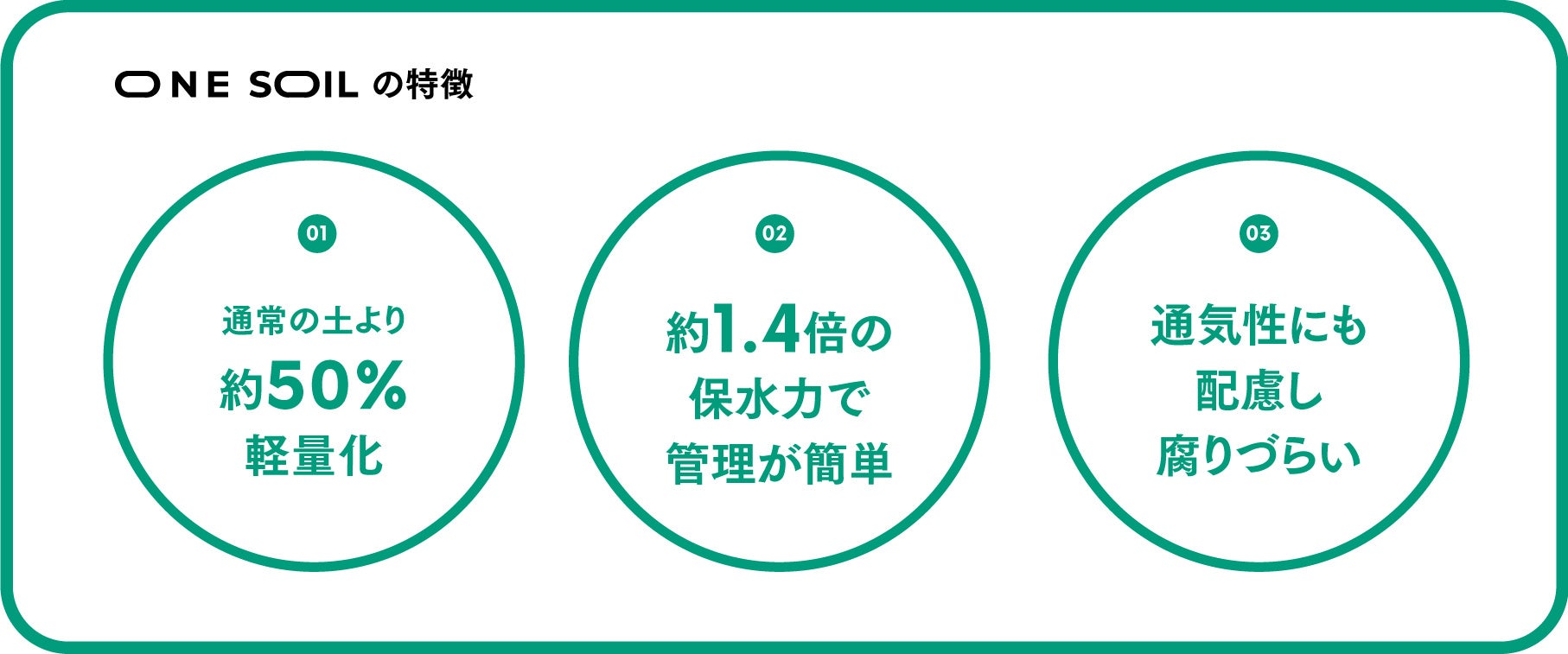 虫が湧きにくいオリジナルブレンドの人工土「ONESOIL」を使用しています。ONESOILは、通常の土の半分の軽さで1.4倍の保水力があり、通気性にも配慮されているため、植物の管理に最適です。さらに、すべての鉢には水分チェッカーがセットされており、簡単に観葉植物を生活に取り入れることができます。