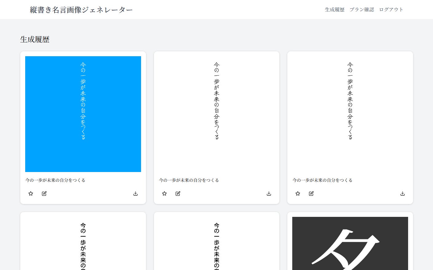 本サービスでは、月額1,650円~(7日間無料トライアルあり)で、以下のような縦書きの名言画像を作成することができます。