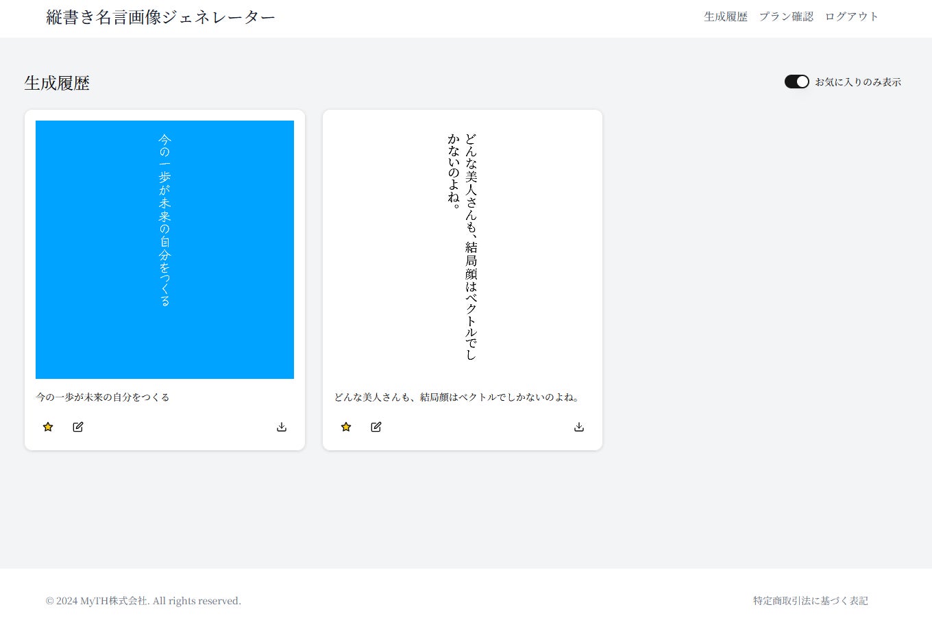 MyTH株式会社(本社:東京都、代表:松本淳)は、AI名言生成機能を搭載した、縦書き名言ジェネレーターをリリースします。