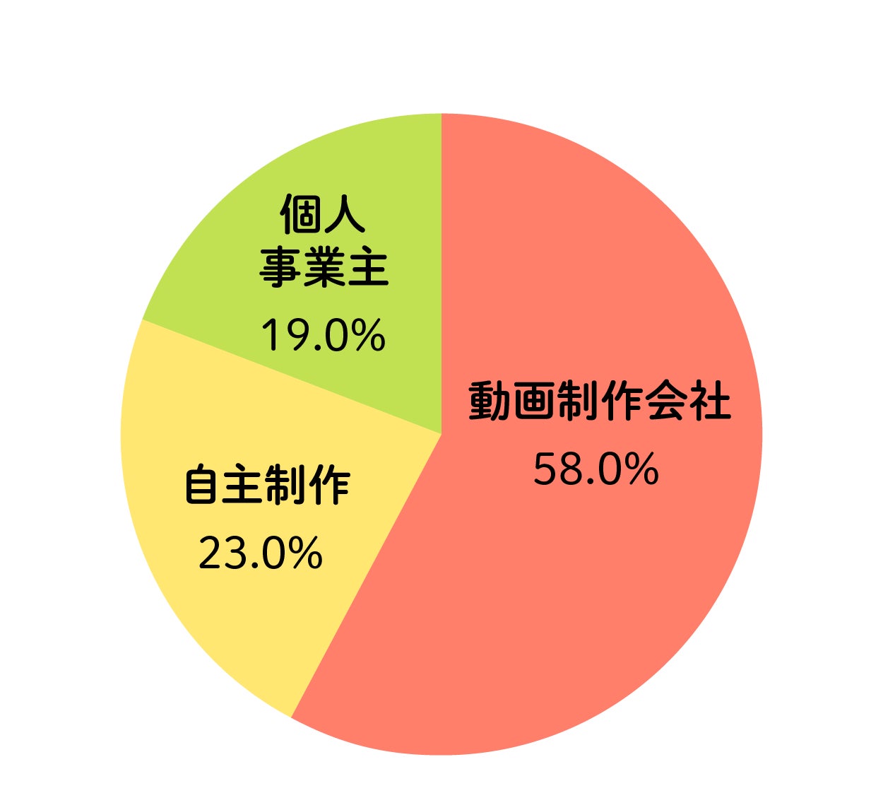 多くの企業では動画制作にかける費用を抑えたい傾向にあると考えられます。ゆえに、動画制作会社ではなく、個人事業主や自主制作している企業が多いと推測されます。
