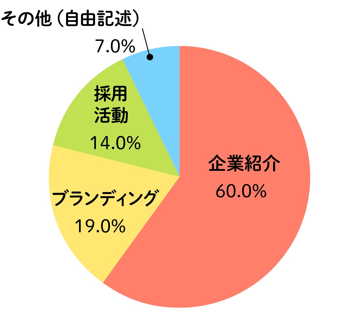 一部の企業では、ブランディングまたは採用活動目的で制作しています。その他、商品紹介や自社製品操作方法などの回答もありました。