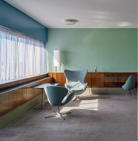 「SAS ロイヤル ホテル」としても知られ世界初のデザイナーズホテルと称される「ラディソン コレクション ロイヤル ホテル」は、アルネ・ヤコブセンの代表的な建築作品の一つとして知られ、1960年のオープン以来、モダンで精緻な美学の象徴とされています。ホテル内にはアルネ・ヤコブセンがこのホテルのためにデザインしたエッグチェアやスワンチェアなどの象徴的な家具や照明が配置され、カーペットや水栓金具まで、インテリアのすべてがトータルデザインされており、デンマークデザインの結晶ともいえる空間が広がっています。