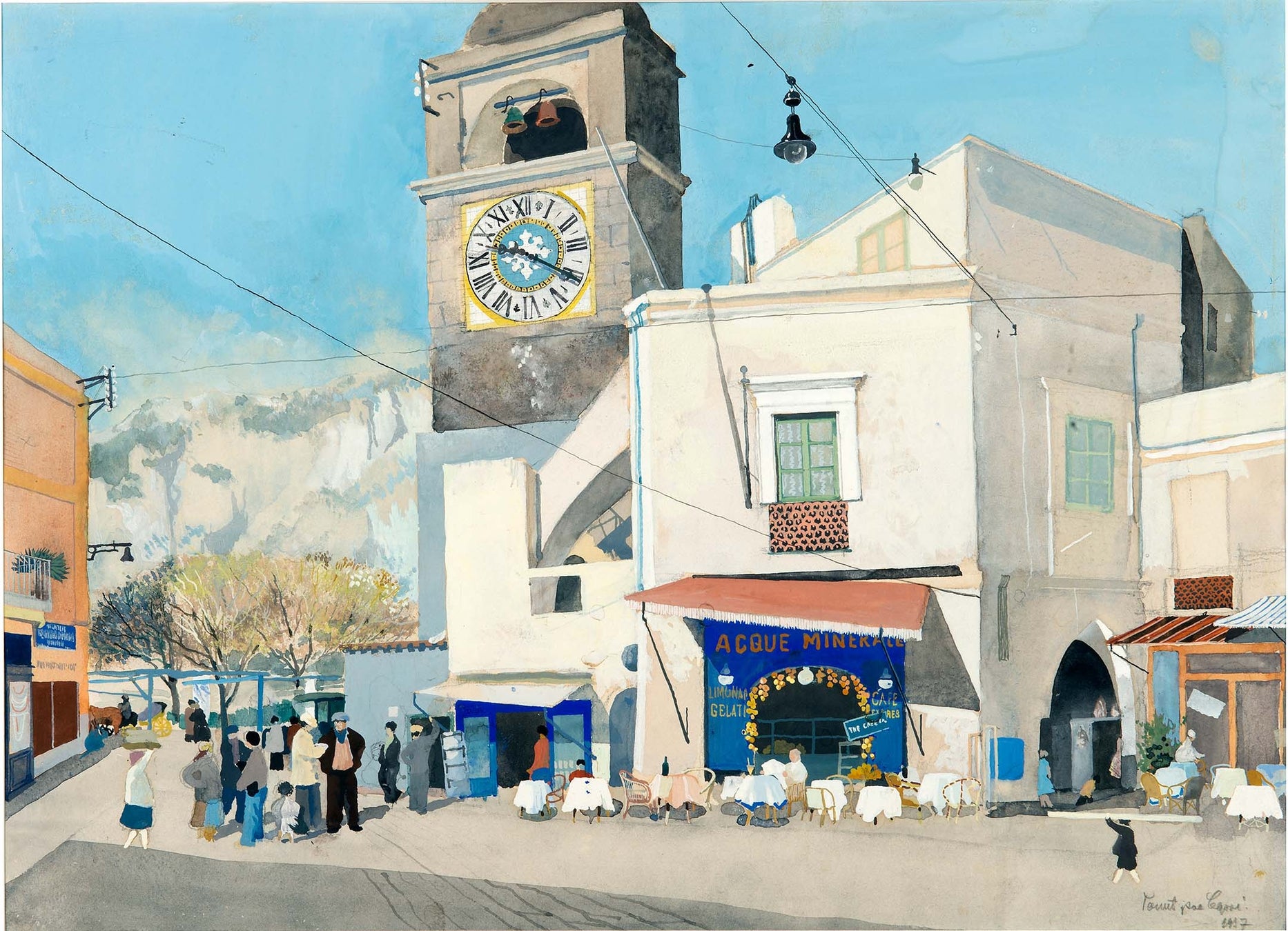 彼が残したドローイングや水彩画には、自宅にあった17世紀の時計の初期のスケッチや、1937年にイタリアのカプリ島を訪れた際に街の広場で描いた美しい水彩画などがあり、時計文字盤に使用されていたローマ数字への興味と情熱が垣間見えます。