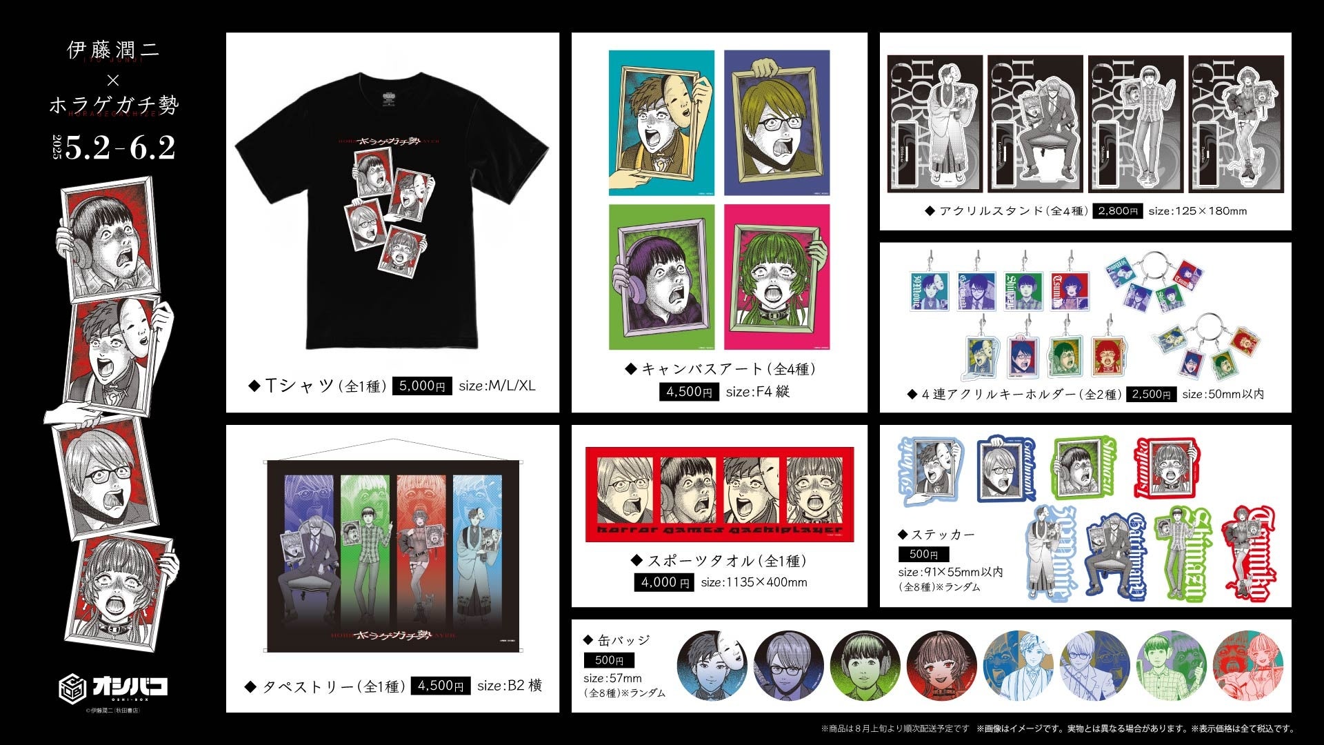『伊藤潤二』×『ホラゲガチ勢』描き下ろしイラストを使用したコラボ記念グッズがオシバコECサイトにて販売決定!