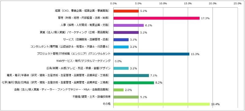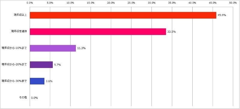 ● 希望する業種は、「メーカー」(23.5%)がトップ、次いで「IT/インターネット業界」(21.2%)、職種は「管理部門」(17.3%)がトップ、次いで「IT技術者」(15.3%)となった。年収は、現年収を維持または増加を希望している方が多く、U・Iターン転職の基準を年収600万円以上と設定している方が最多