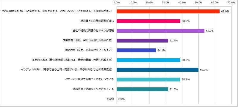 また組織には、社内の風通しの良さや雰囲気の良さ、明確なビジョンを重視する傾向