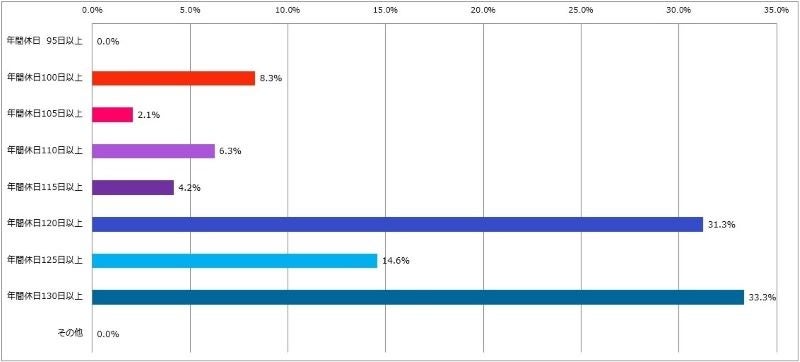 ● 休日休暇は、年間休日120日以上を希望する方が多い