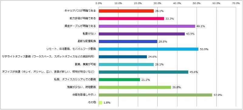 ● 労働環境には、リモート勤務や休暇の取得がしやすいなど柔軟性を望む声が多数