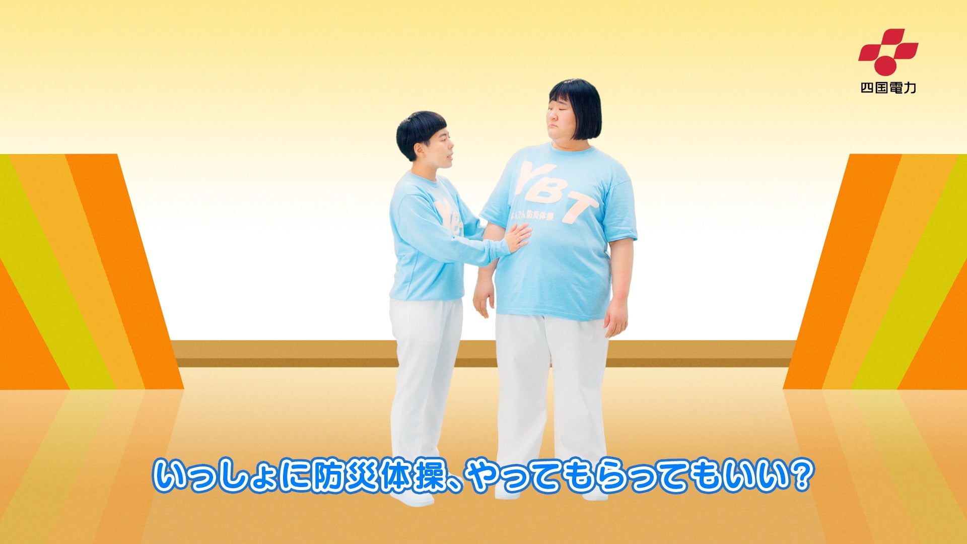 今回、近年頻発する自然災害に対し、防災意識の向上や防災対策の理解を深めていただくことを目的として、誰でも楽しく防災への備えを学んで覚えられるWEB動画「よんでん防災体操 〜YONDEN BOUSAI TAISOU〜」を制作。動画には、リズムネタが人気のヨネダ2000さんに出演いただきました。