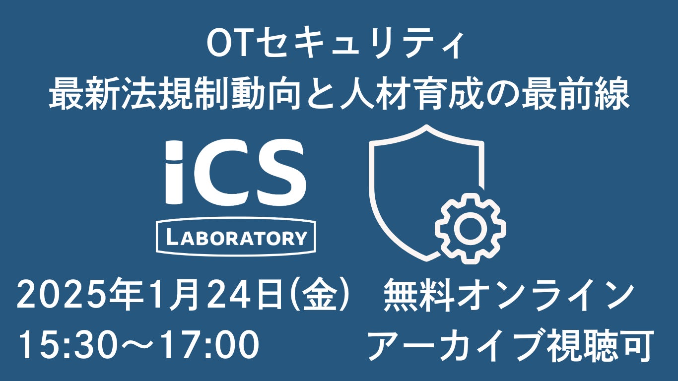 ICS研究所は、2025年1月24日にOTセキュリティ/制御システムセキュリティ分野における最新の法規制対応と実務で求められる人材育成をテーマに無料オンラインセミナーを開催します。