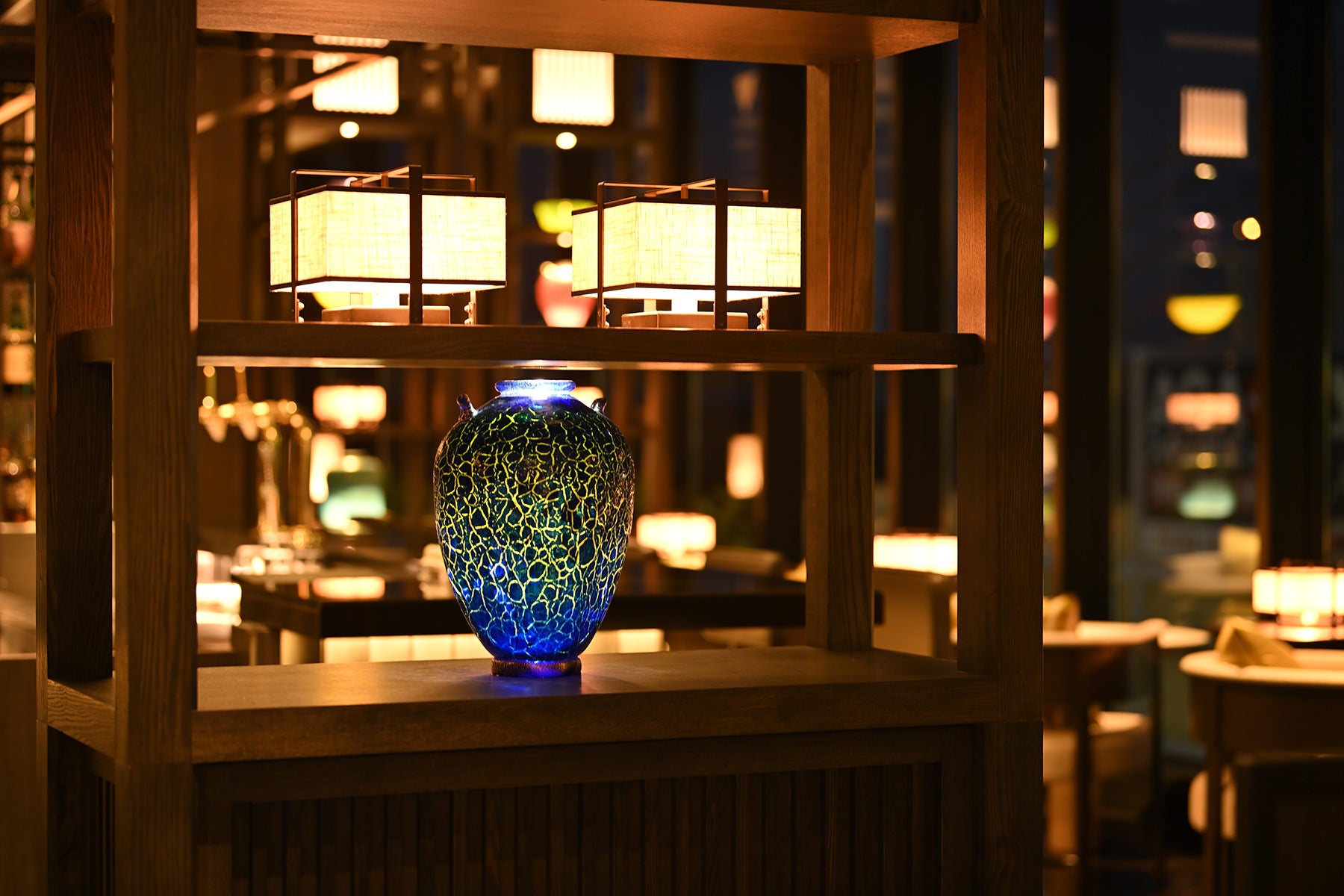 行燈に照らされる「BAR THE BLUE」で、千年後も残る器と、米への真摯な思いが詰まった日本酒・田酒のコラボレーションが生む味覚の旅をご堪能ください。この特別な体験を通じて、青森の自然と歴史、そして器と酒が織りなす贅沢なひとときをお楽しみいただければ幸いです。