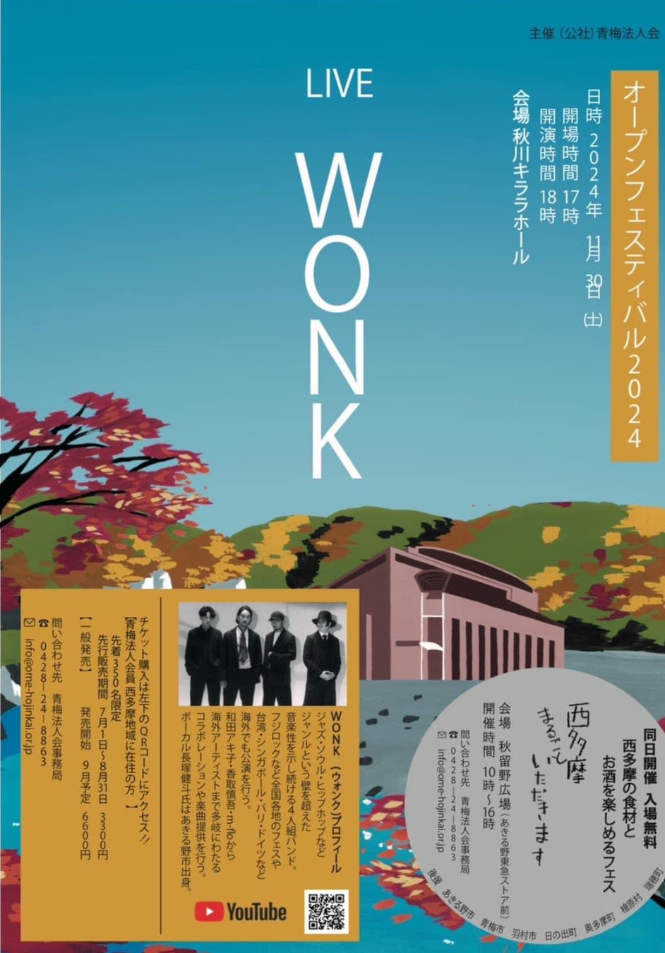4年ぶりにアルバムをリリースしたエクスペリアソウルバンド「wonk」。アルバムリリース後の初ライブはヴォーカル長塚健斗氏の地元東京都あきる野市の「キララホール」で11月30日に開催します!!