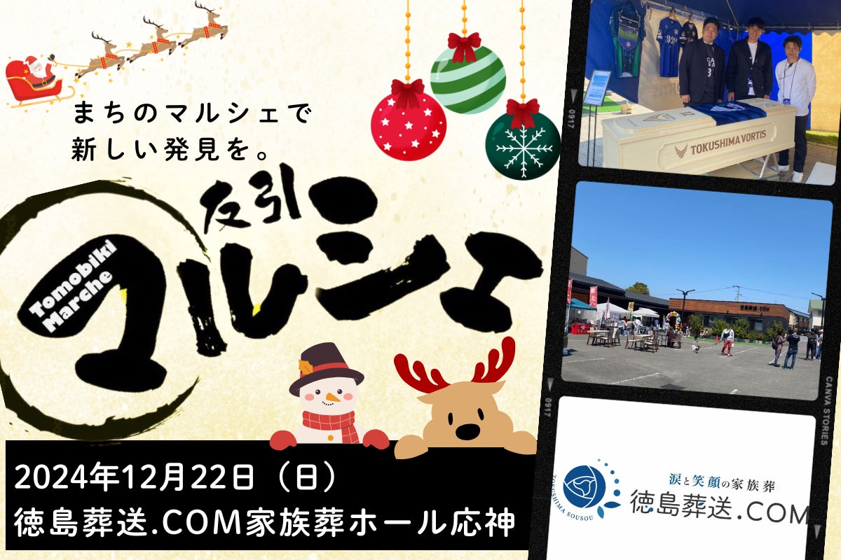 徳島葬送.COMを運営する株式会社T&F(本社:徳島県徳島市、代表取締役:田岡博憲)は、2024年12月22日(日)、地域密着型イベント「第9回友引マルシェ」を開催いたします。人口減少や家族形態の変化に伴い、地域の葬送文化のあり方が問われる中、新たな対話の場として注目を集めています。キッチンカーの香り漂う賑やかな空間で、新しい価値観との出会いを提供する本マルシェは、毎回多くの家族連れでにぎわう人気イベントとして定着しています。